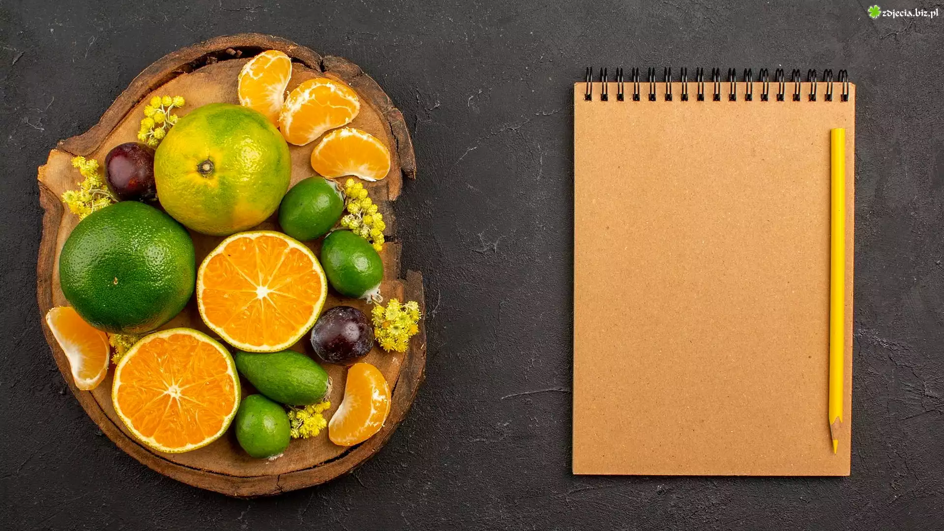 Zdjęcie Owoce, Cytrusy, Deska, Notes