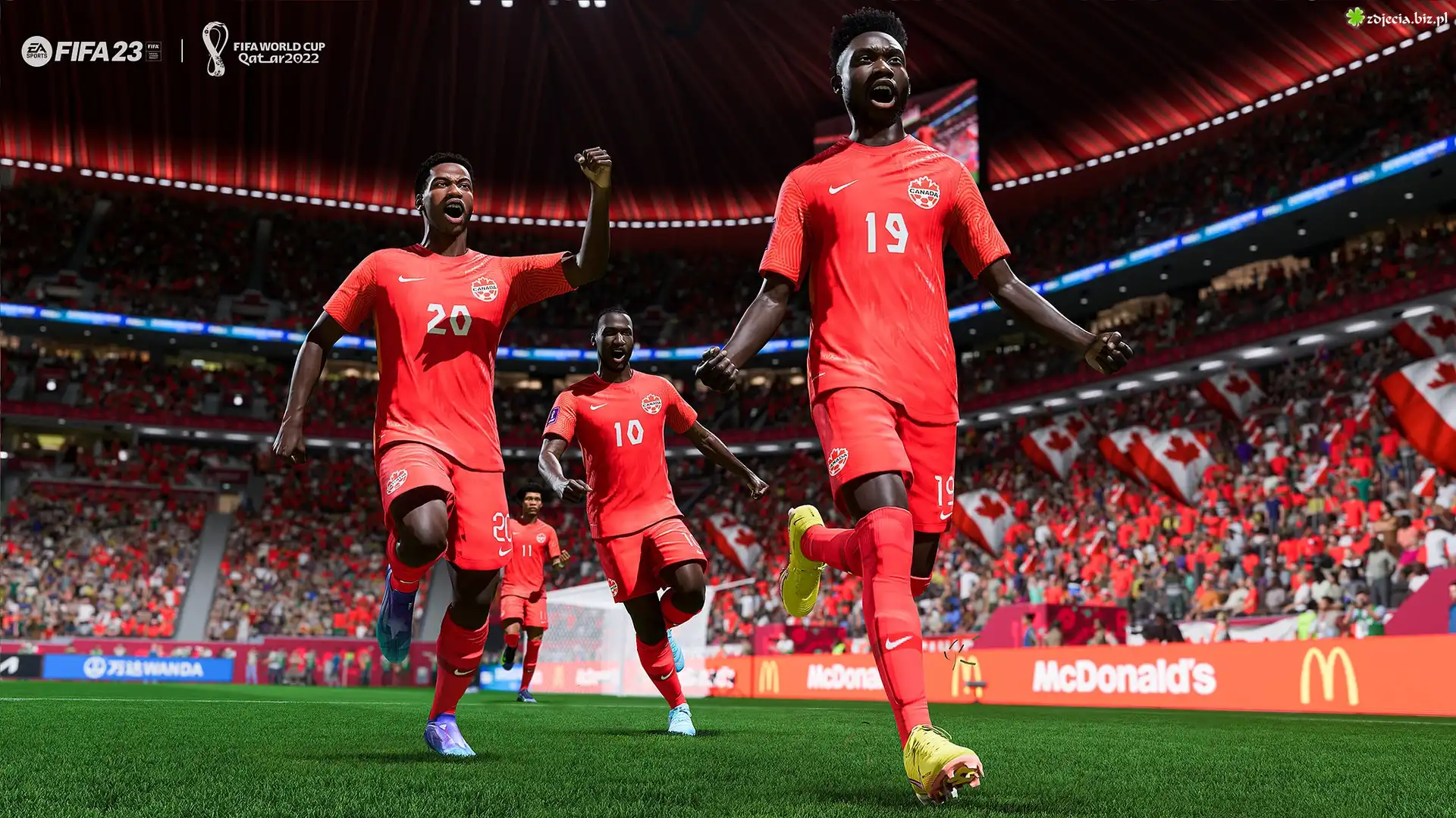 Zdjęcie Piłkarze, Gra, FIFA 23, Czerwone, Stroje