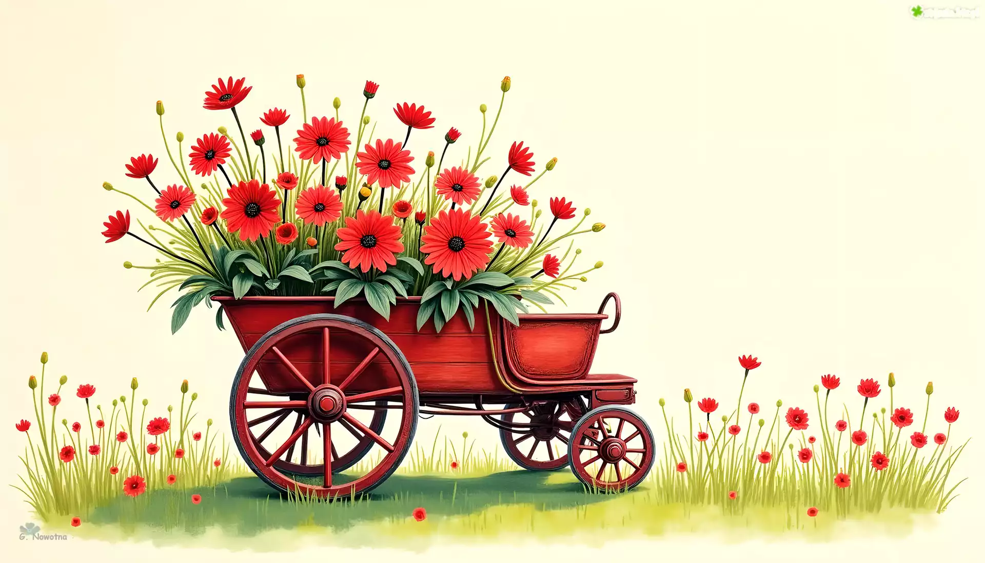 Zdjęcie Czerwone, Kwiaty, Wózek, 2D