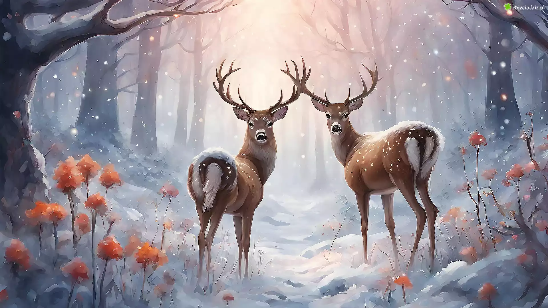 Zdjęcie Dwa, Jelenie, Kwiaty, 2D