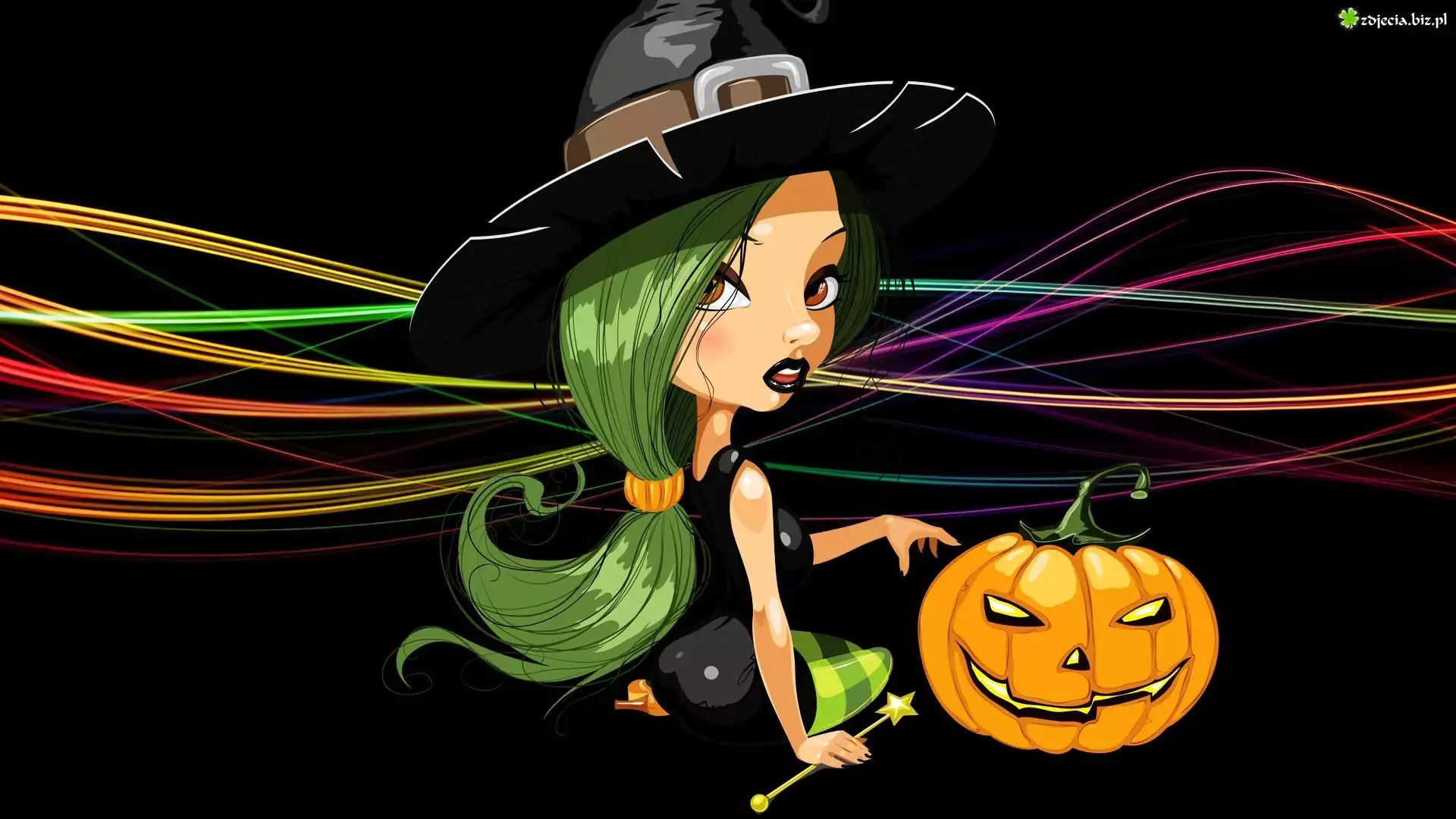 Zdjęcie Grafika 2D, Czarownica, Dynia, Halloween, Czarne tło