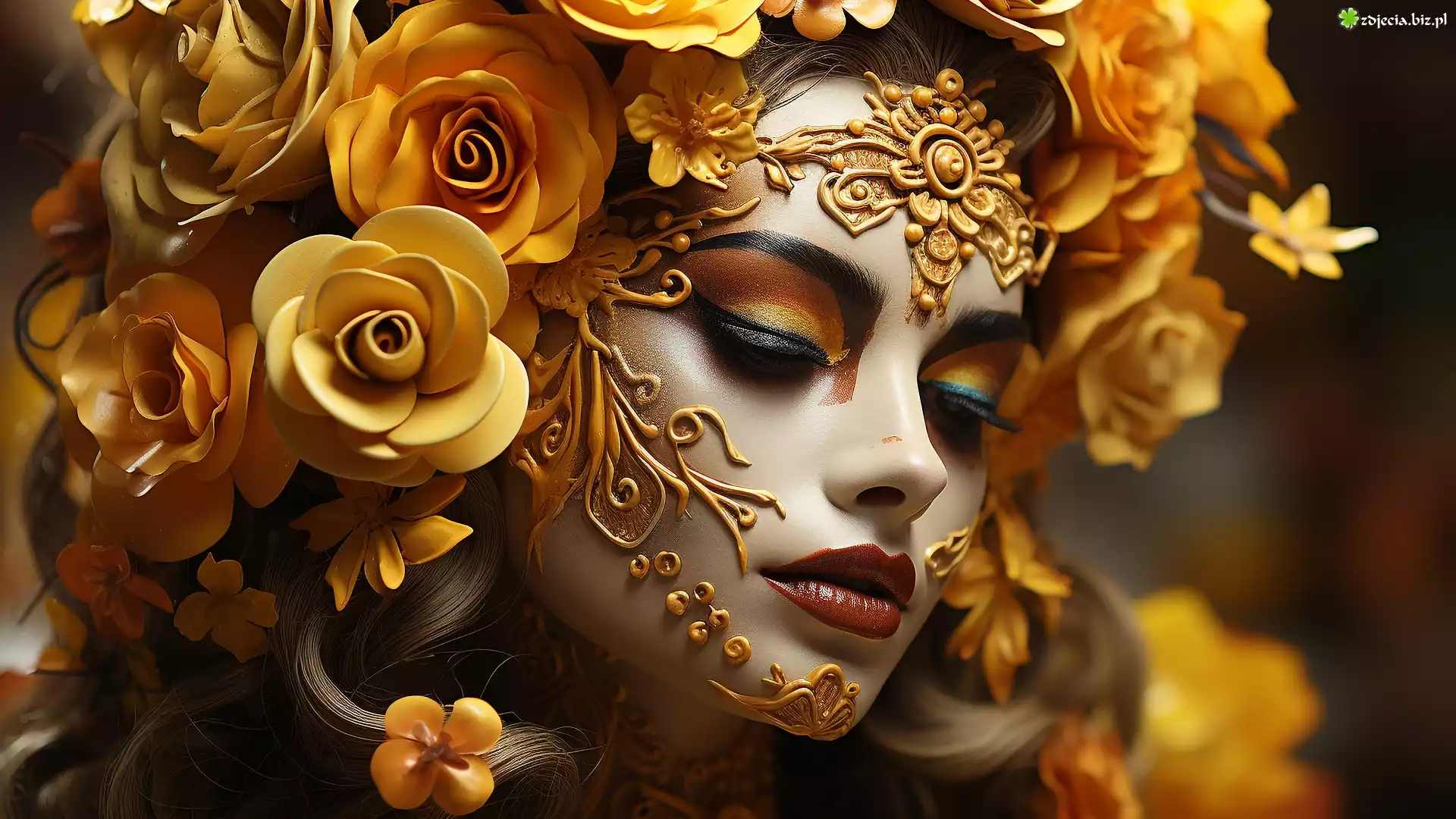 Zdjęcie Kobieta, Makijaż, Kwiaty, 2D