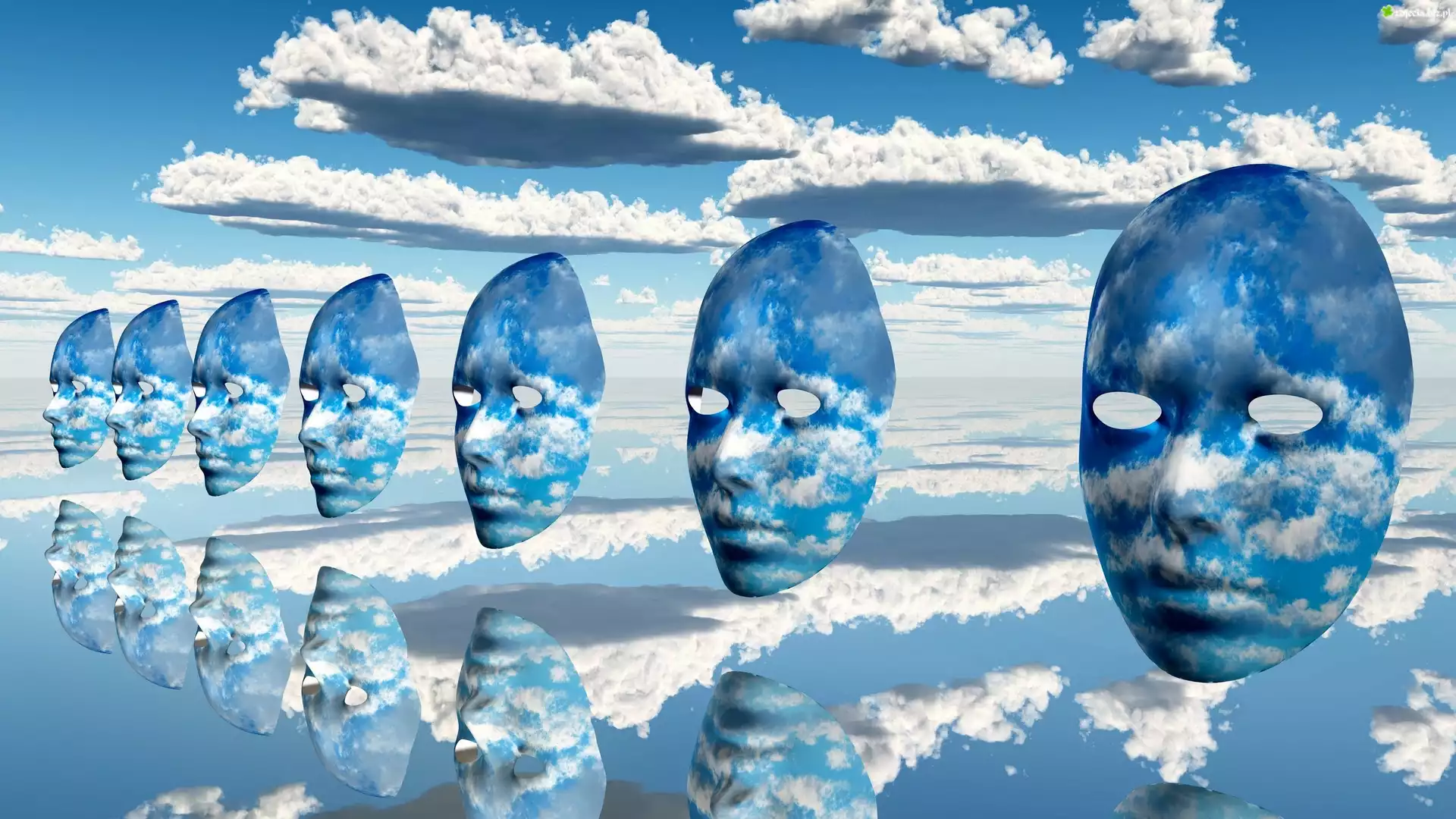 Zdjęcie 3D, Abstrakcja, Maski, Chmury