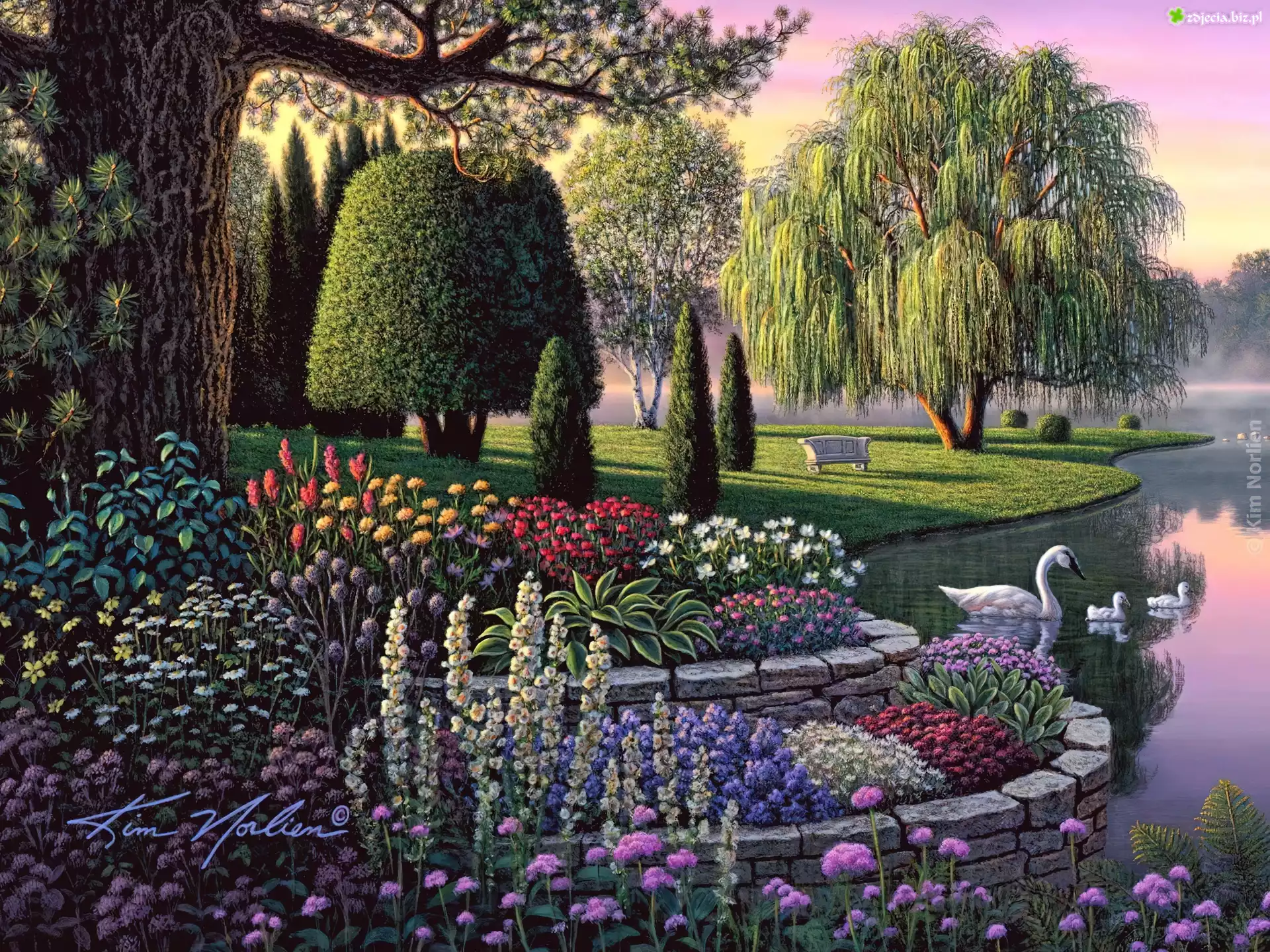 Zdjęcie Ogród, Łabędzie, Kwiaty