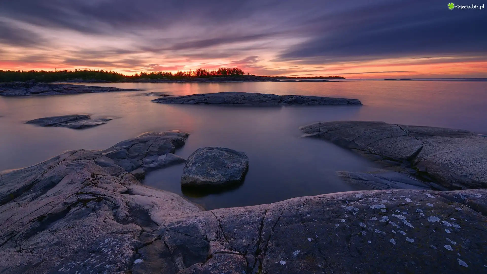 Zdjęcie Jezioro, Ładoga, Skały, Zachód słońca, Karelia, Rosja