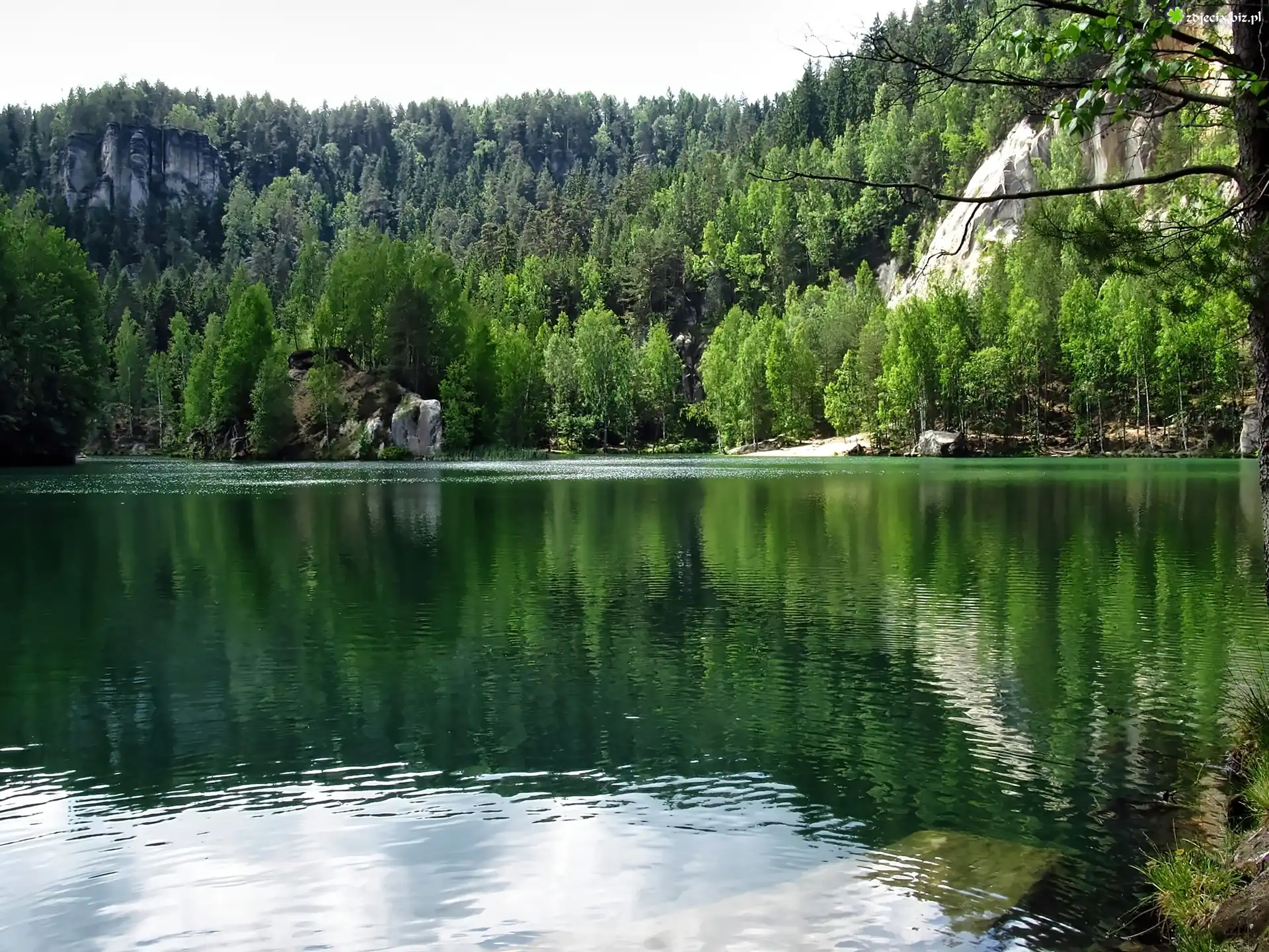 Zdjęcie, Czechy, Adrspach, Skalne Miasto, Skały, Las, Świerki