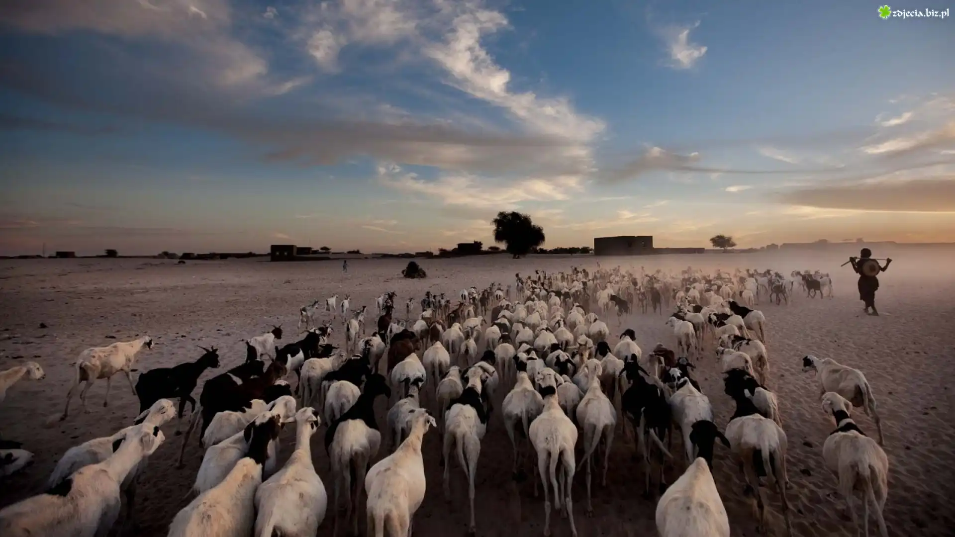 Zdjęcie Afryka, Pustynia, Stado, Kóz, Pasterz