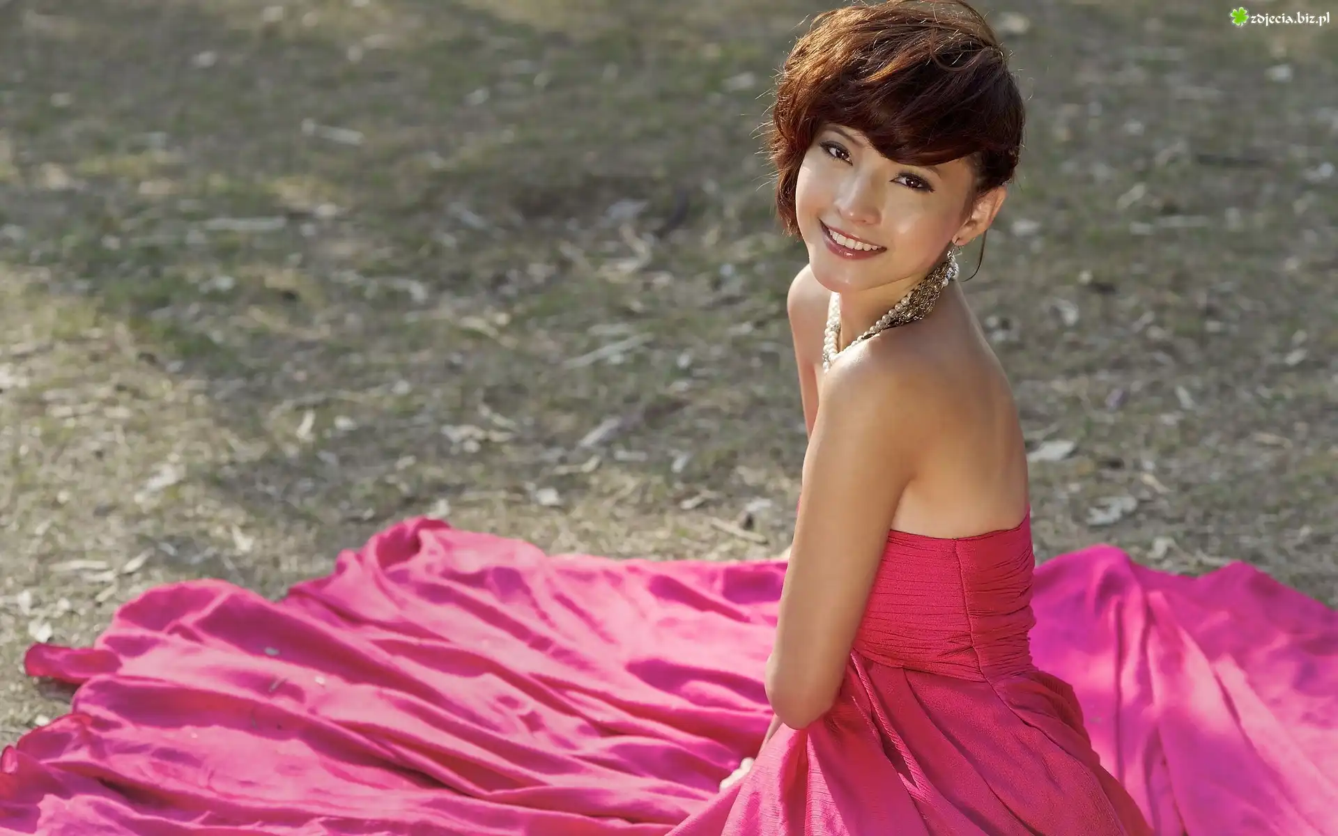 Zdjęcie, Agnes Lim, Azjatka, Różowa, Sukienka