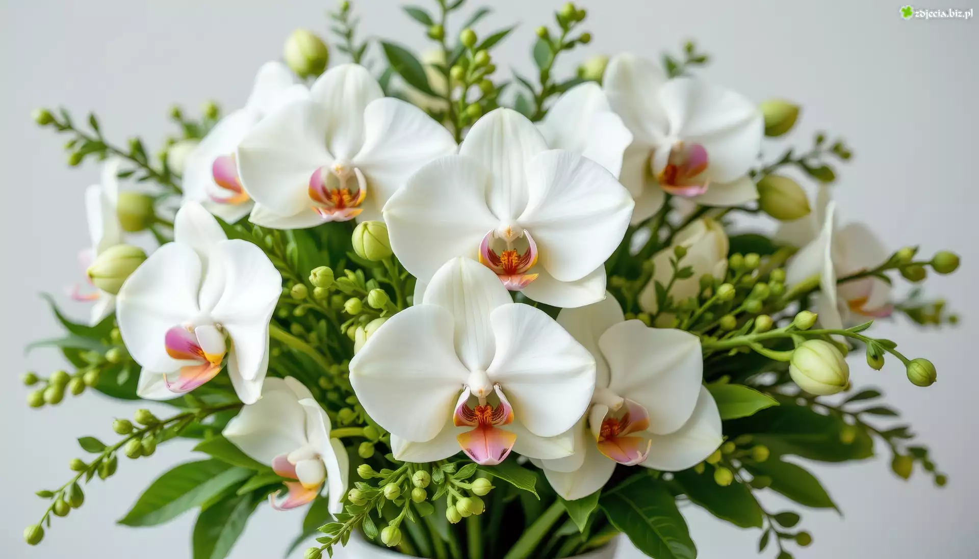 Zdjęcie, Białe, Storczyki, Liście, AI