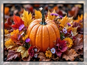 Zdjęcie, Dynia, Liście, Kwiaty, AI