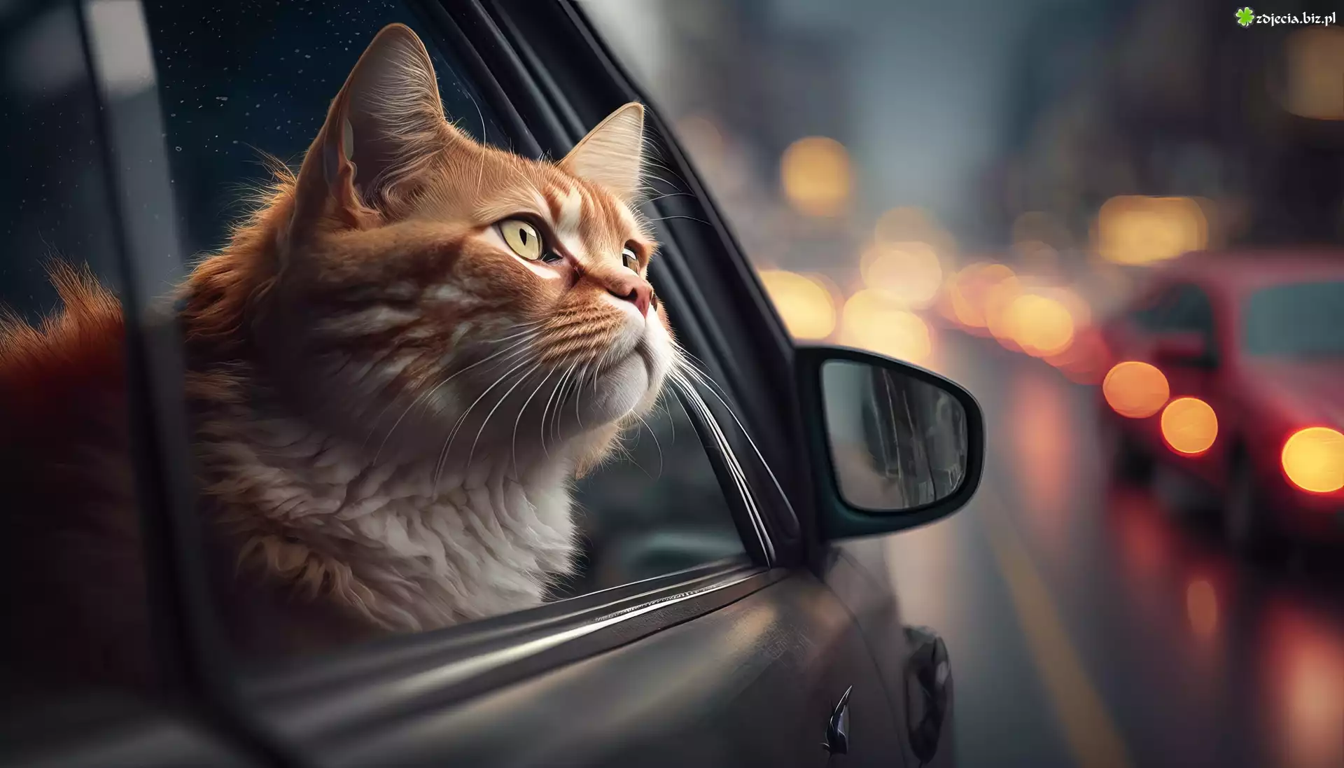 Zdjęcie Kot, Samochód, Okno, AI