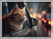 Zdjęcie, Kot, Samochód, Okno, AI