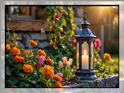 Zdjęcie, Lampion, Kwiaty, Grafika AI