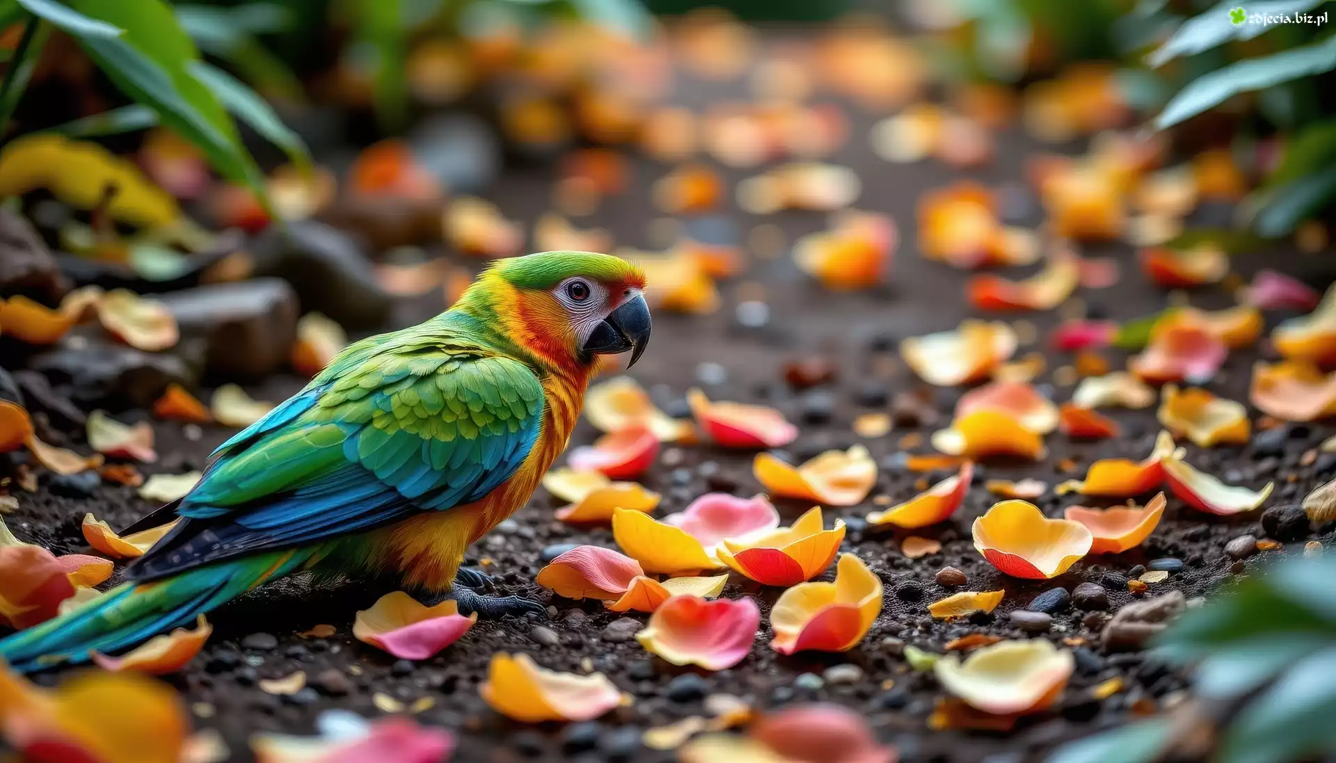 Zdjęcie Papuga, Płatki, Kwiatów, AI