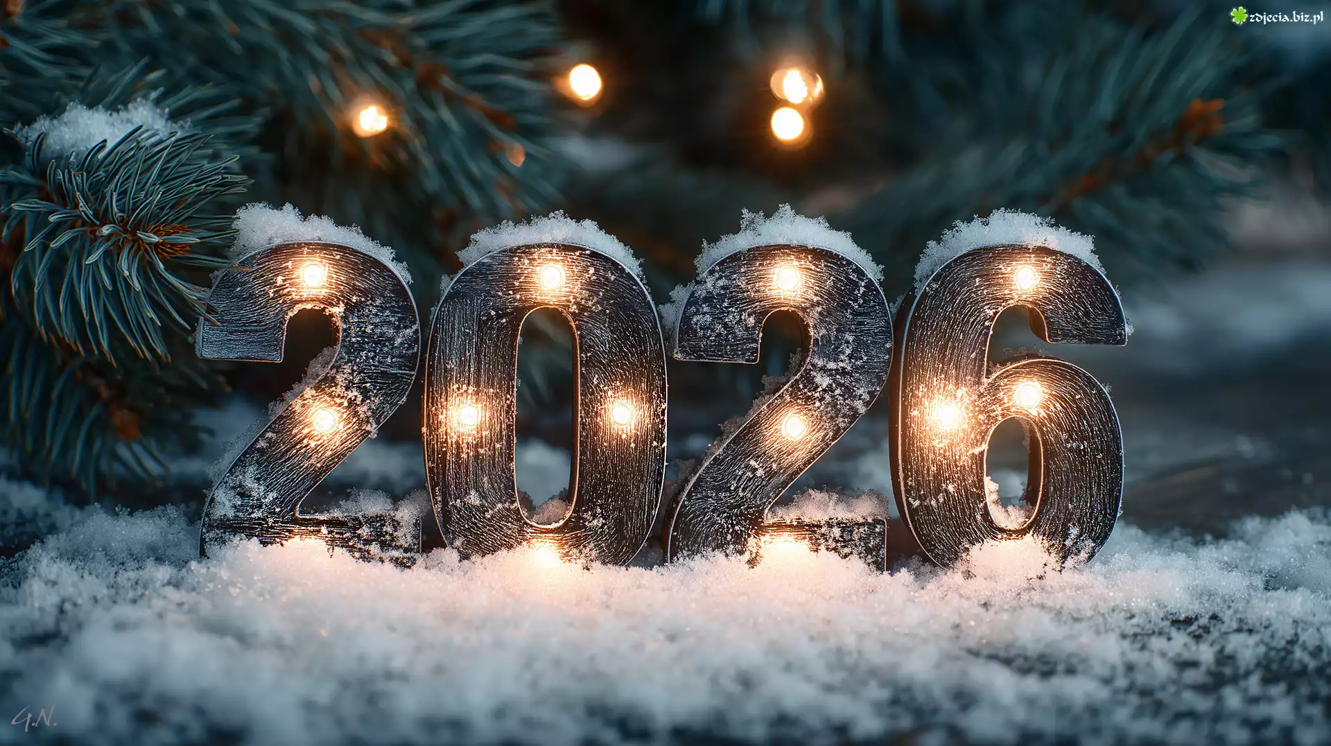 Zdjęcie Cyfry, Nowy Rok, 2026, Choinka, Śnieg, Grafika AI