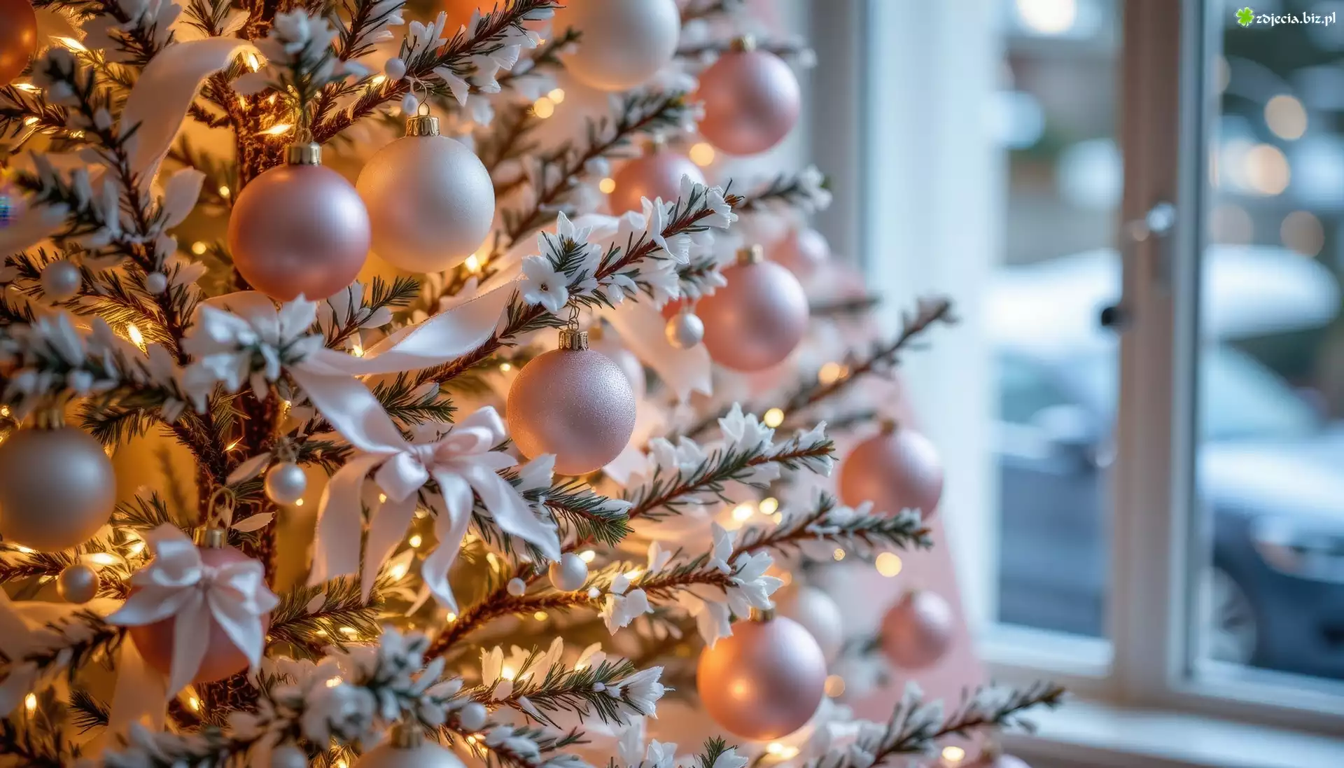 Zdjęcie Choinka, Bombki, Różowe, Ozdoby, Boże Narodzenie, Grafika AI