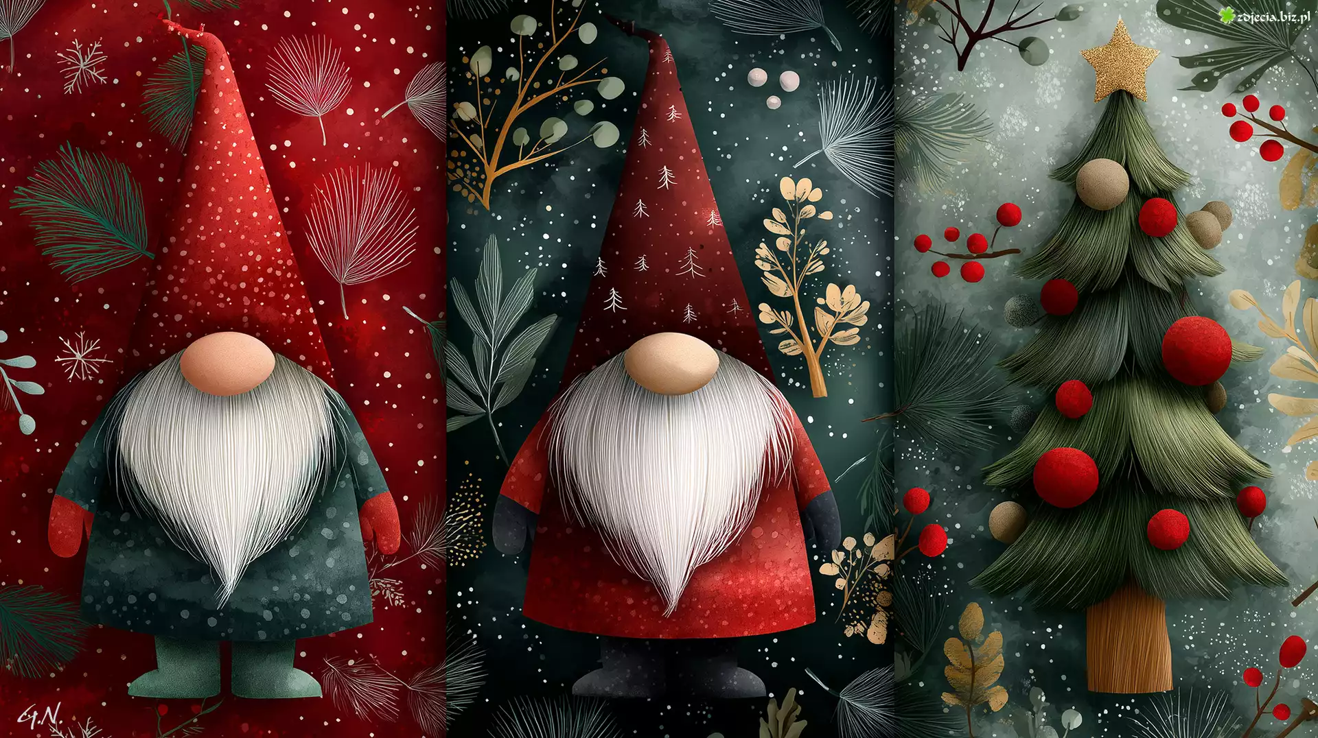Zdjęcie, Skrzaty, Choinka, Grafika AI