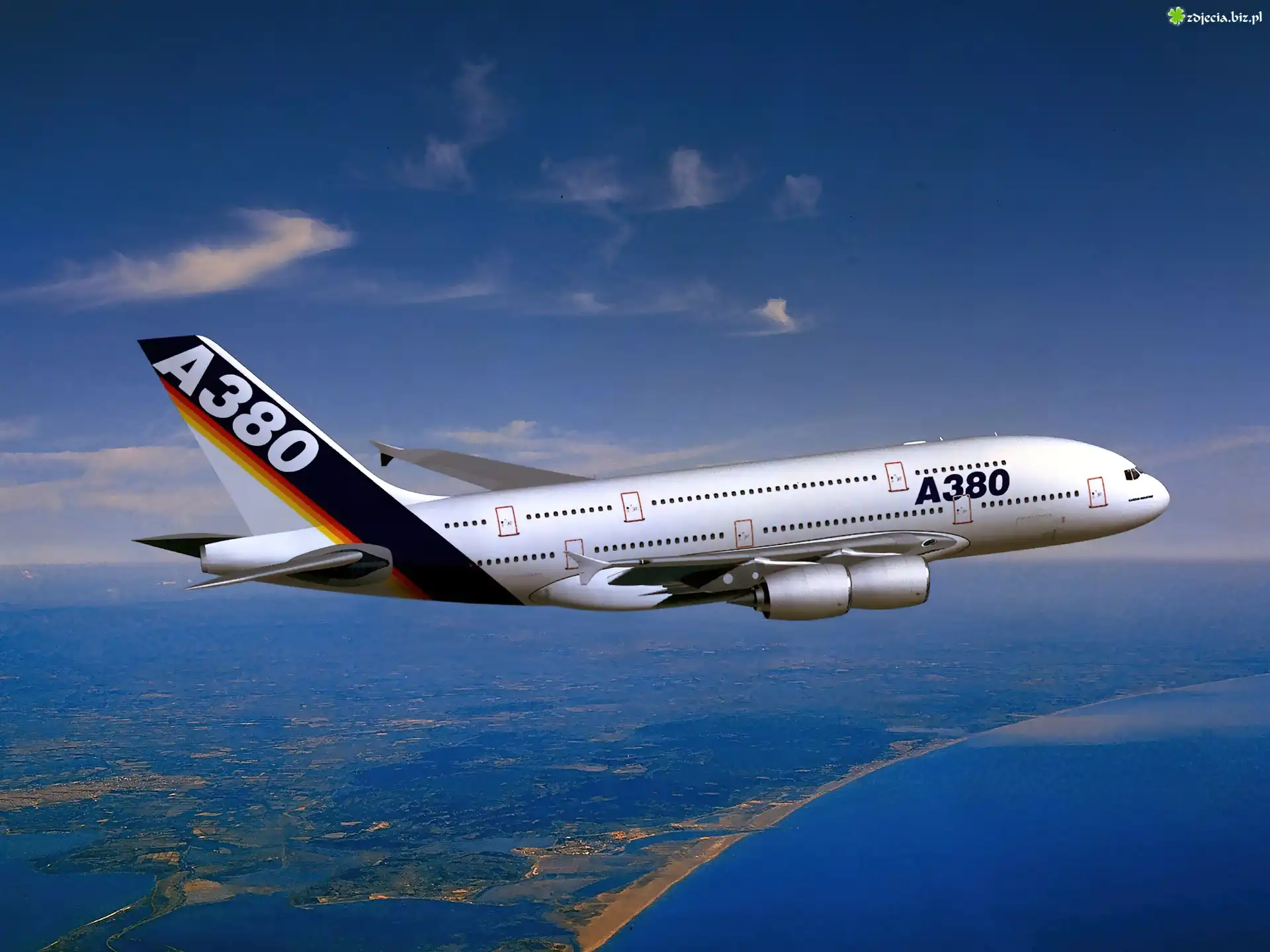 Zdjęcie, Airbus A380 SuperJumbo, Skrzydła, Ogon
