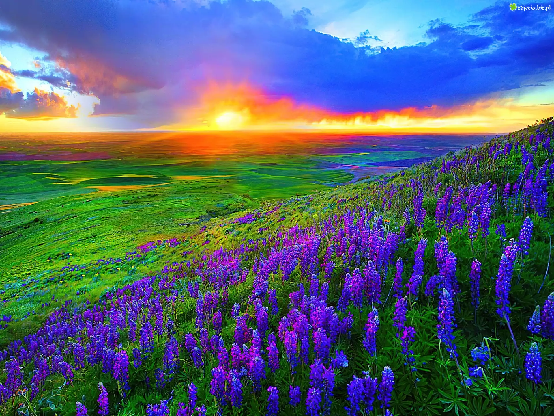 Zdjęcie Łąka, Łubin, Zachód, Słońca