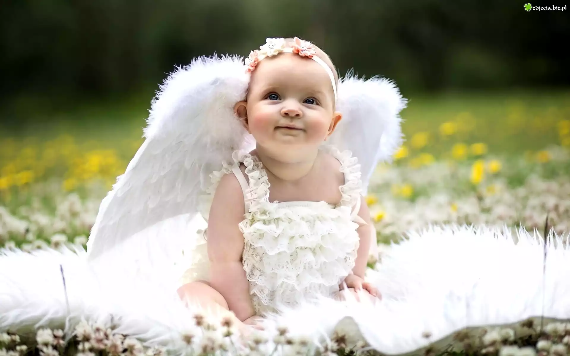 Zdjęcie Łąka, Mała, Dziewczynka, Sukienka, Skrzydełka, Aniołka