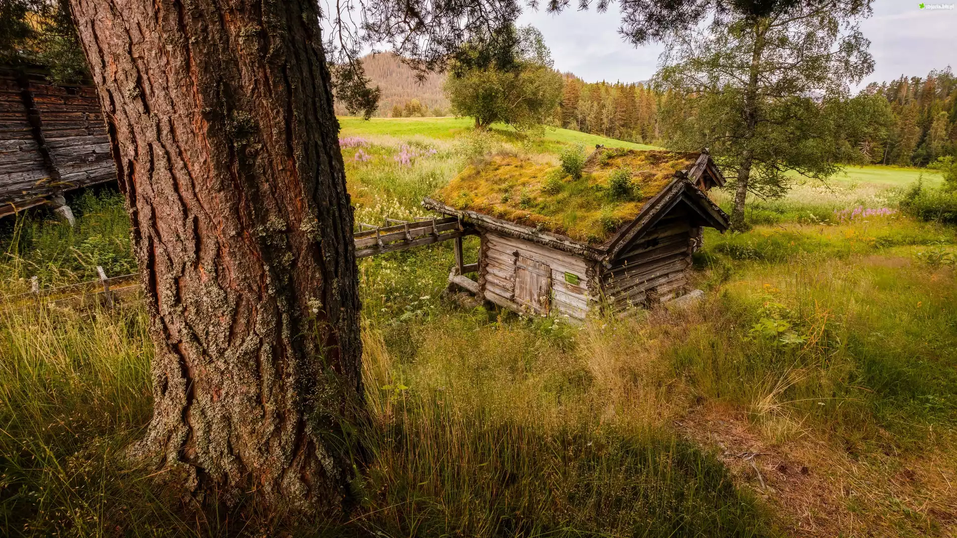 Zdjęcie Łąka, Drzewa, Dwie, Szopy, Las, Jesień
