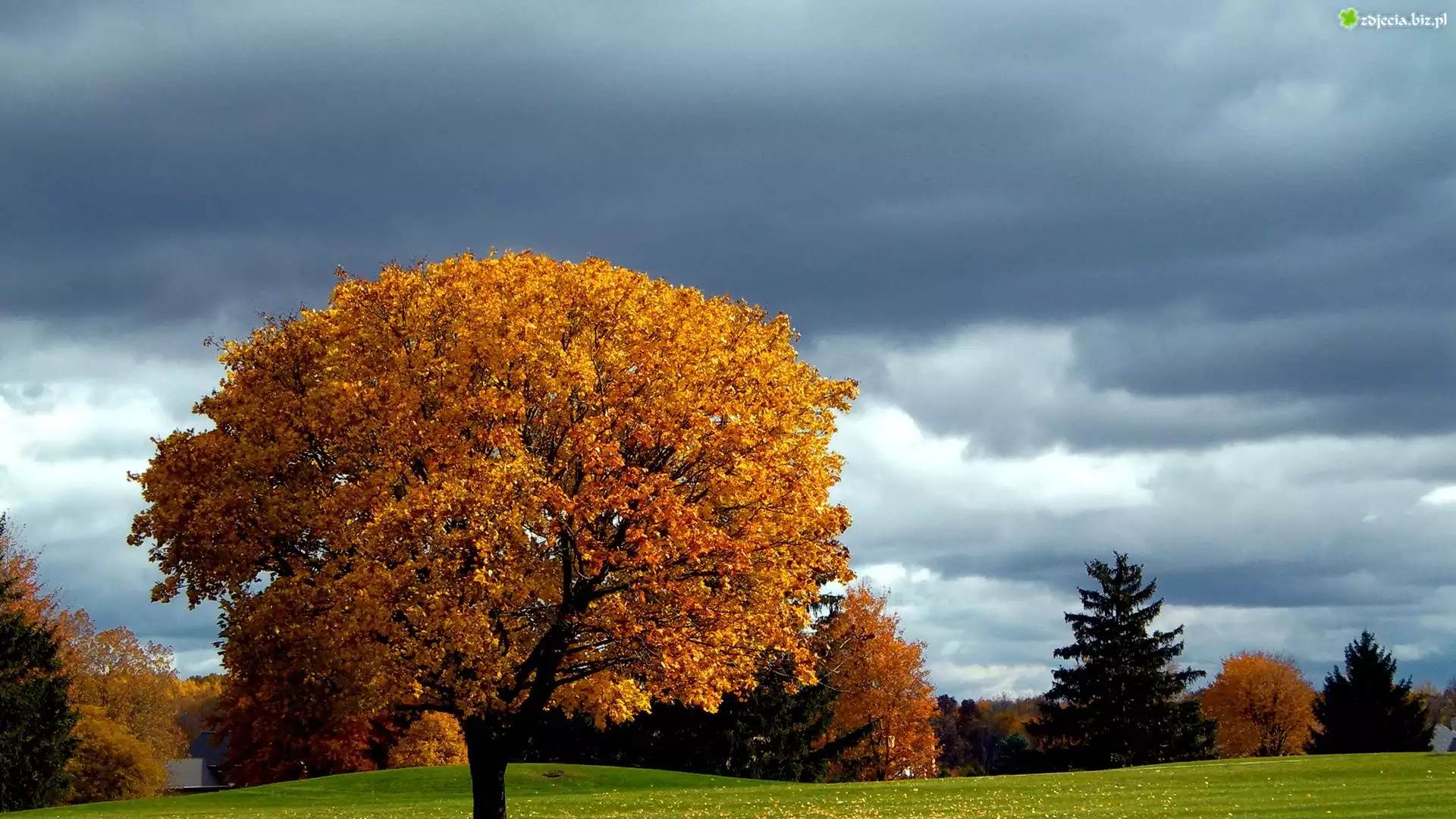 Zdjęcie Drzewa, Łąka, Jesień