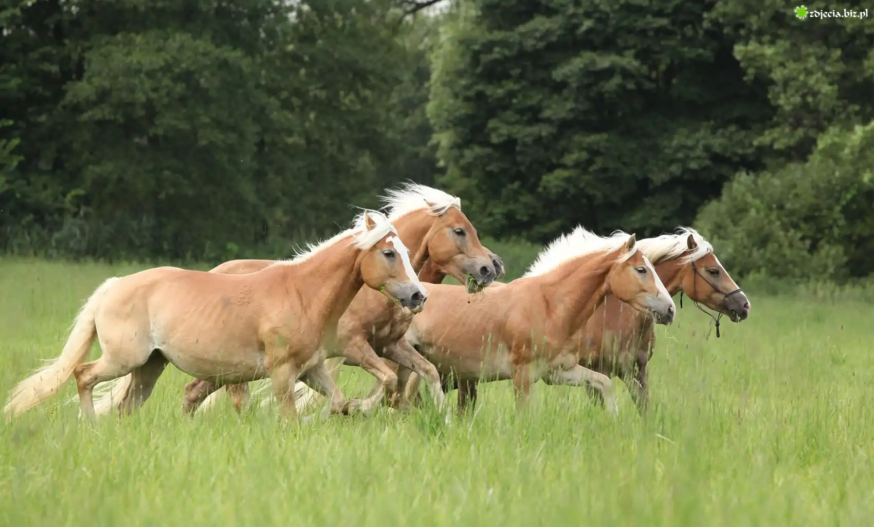 Zdjęcie Konie, Łąka, Drzewa