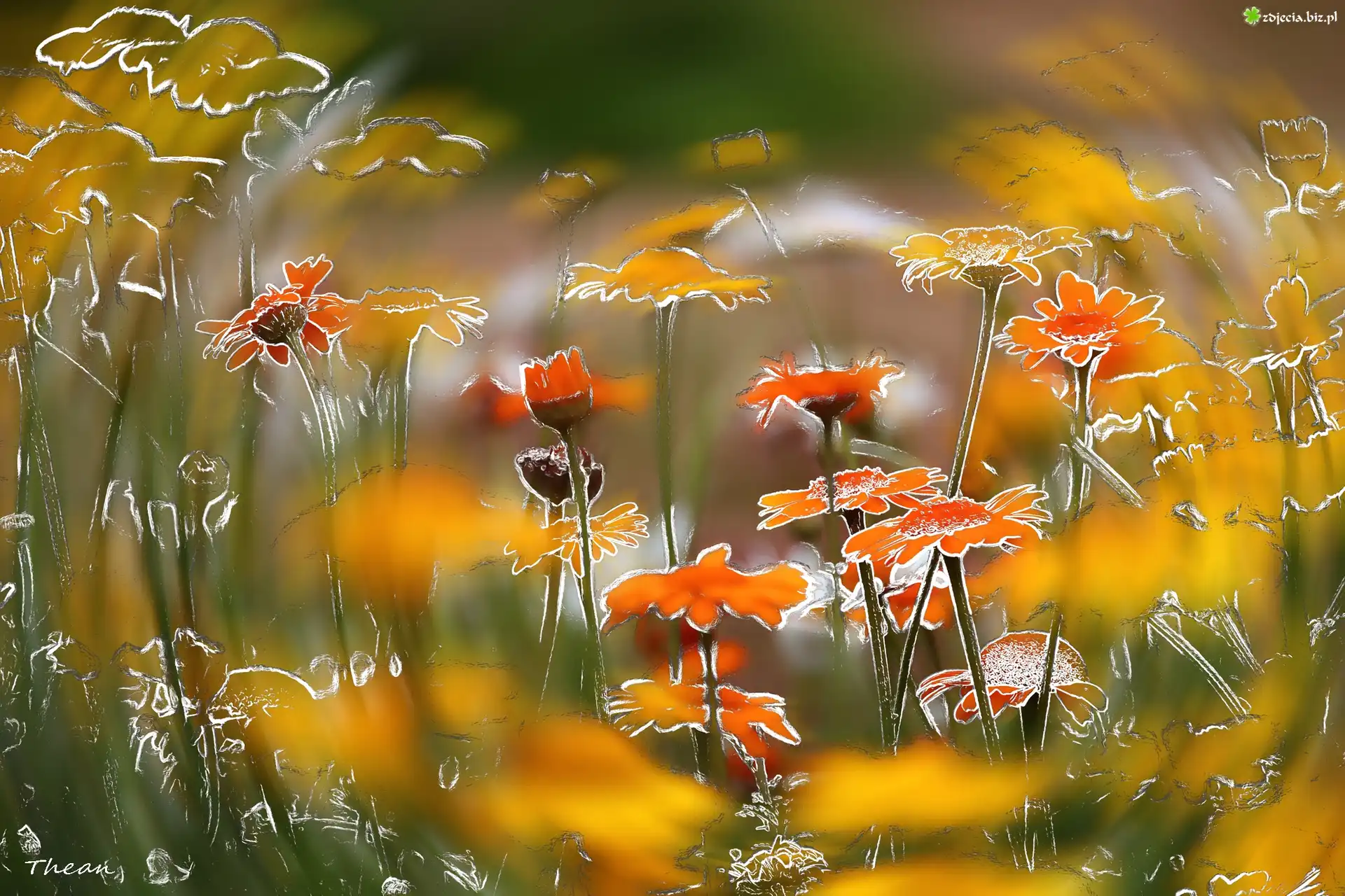 Zdjęcie, Kwiaty, Łąka, Grafika