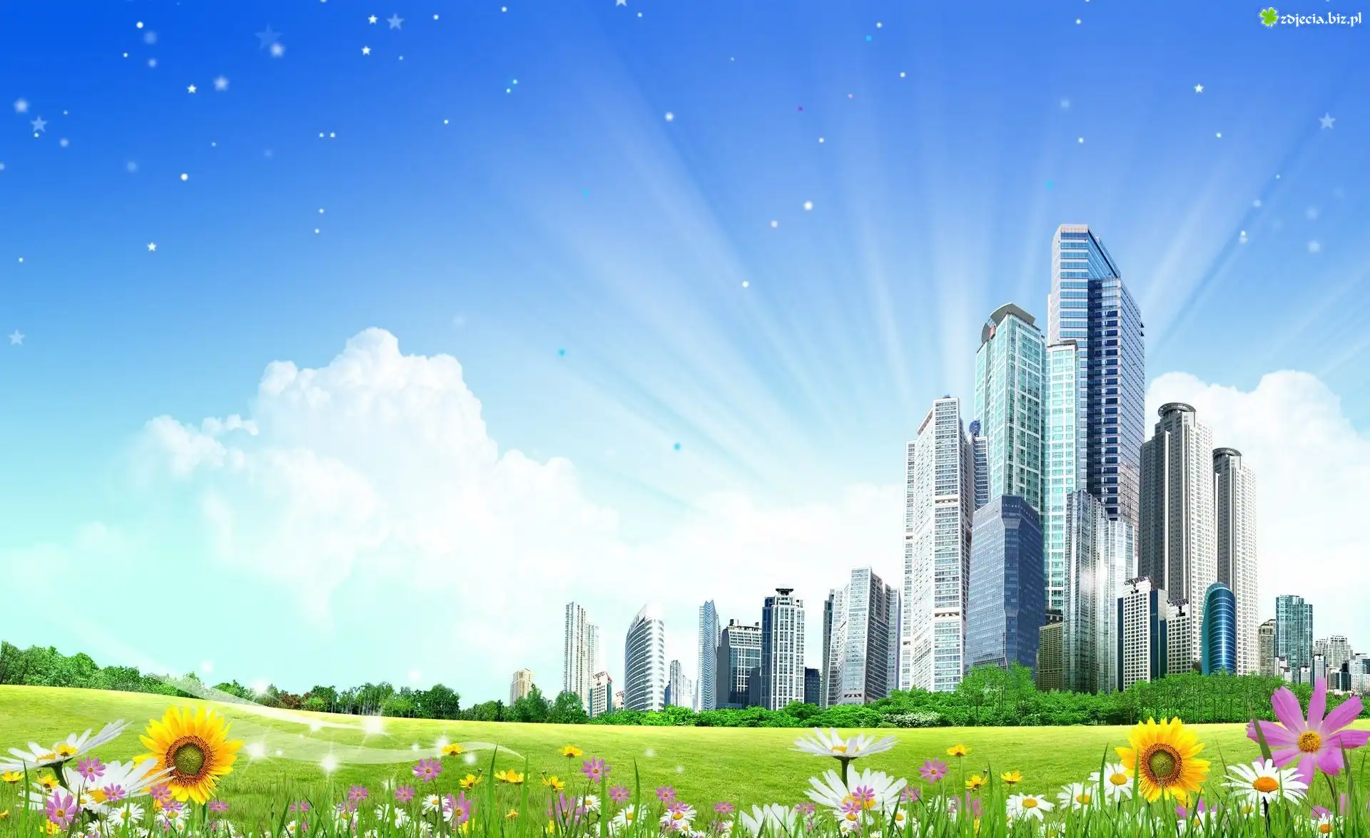 Zdjęcie Wieżowce, Łąka, Kwiatki