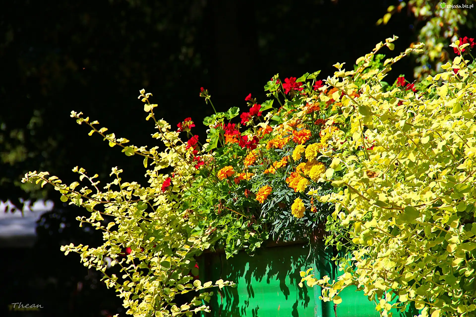 Zdjęcie Kwiaty, Aksamitki, Pelargonie