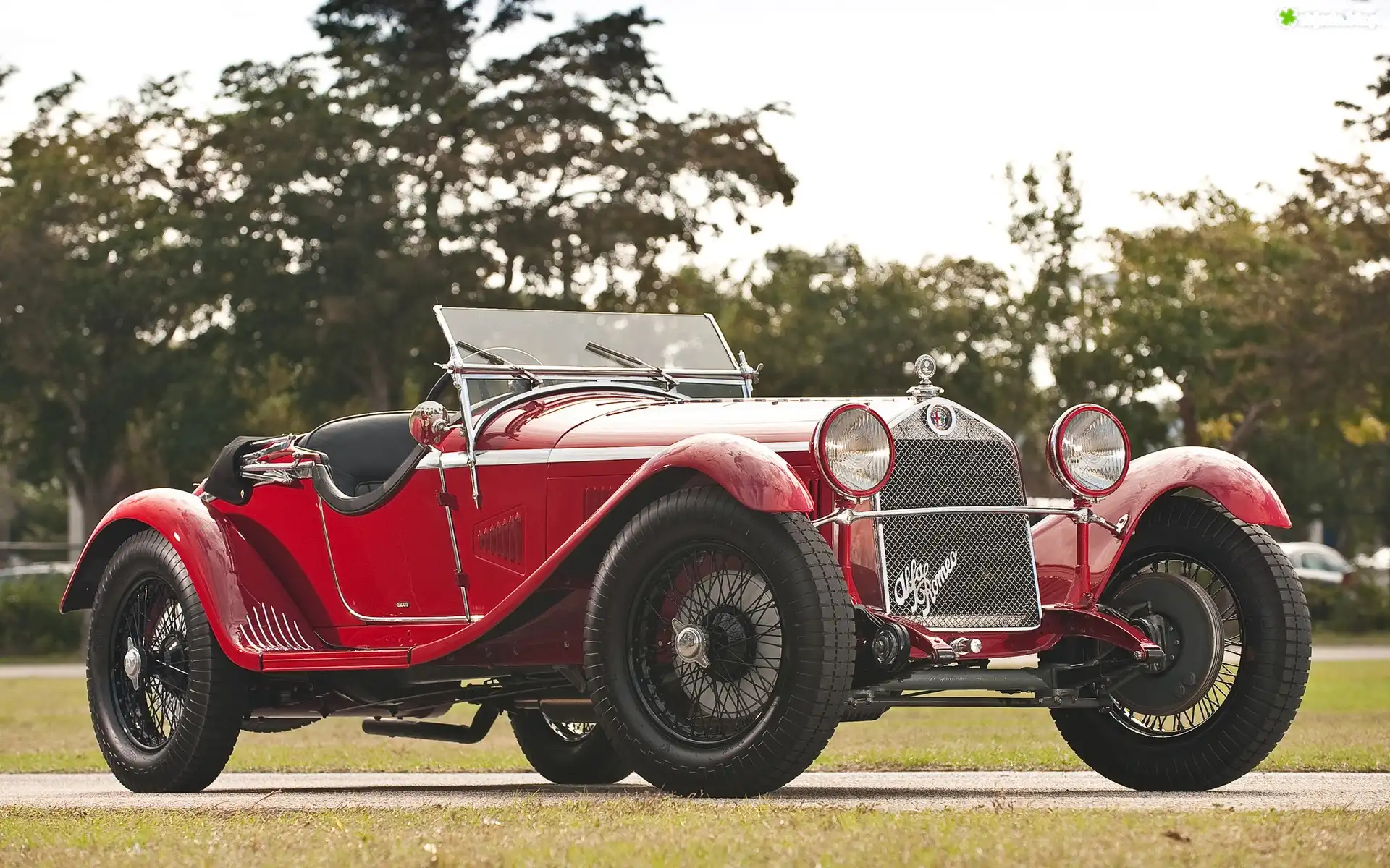 Zdjęcie, Alfa Romeo, Zabytkowy, Park, Drzewa