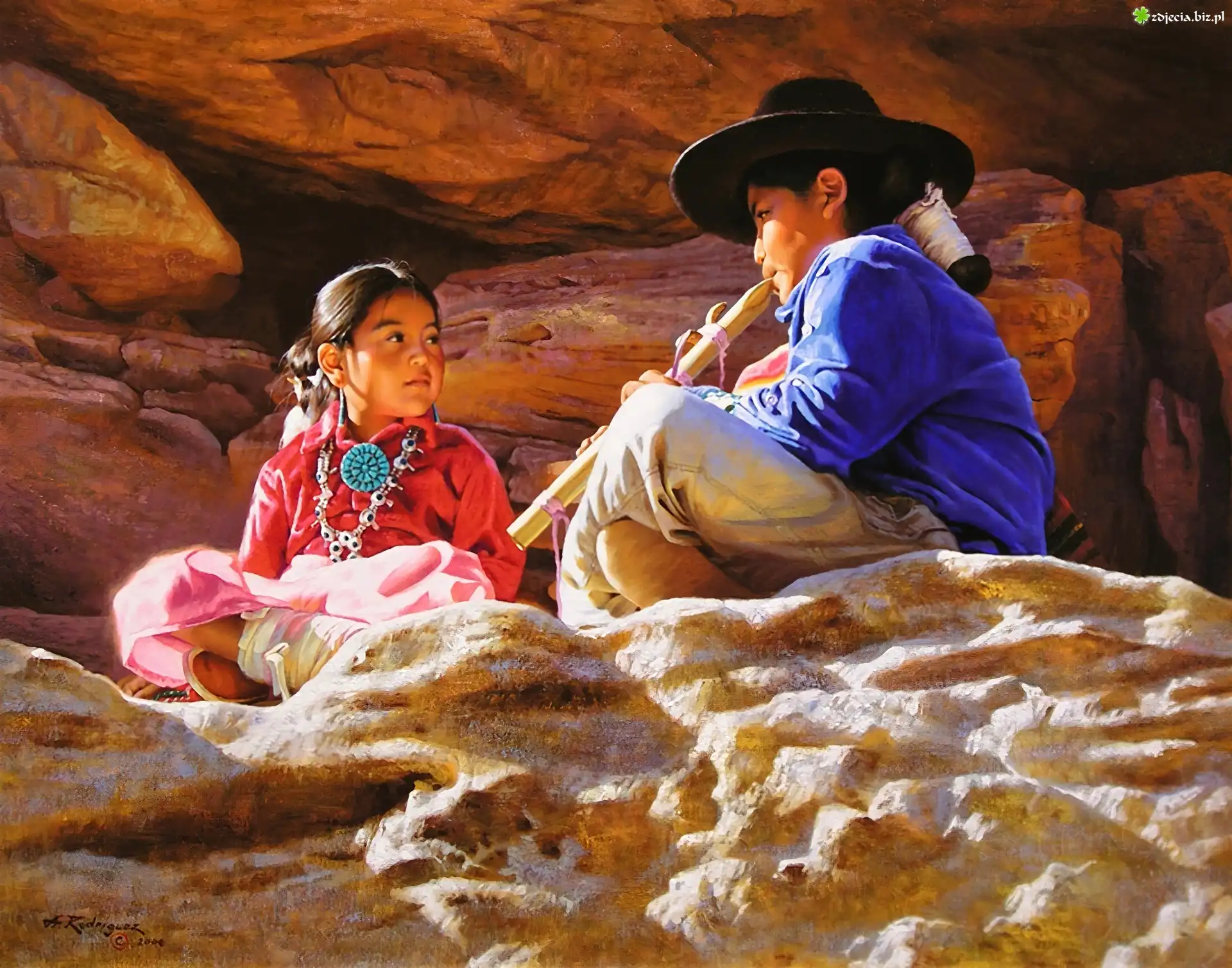 Zdjęcie, Alfredo Rodriguez, Malarstwo, Skały, Dzieci, Indianie