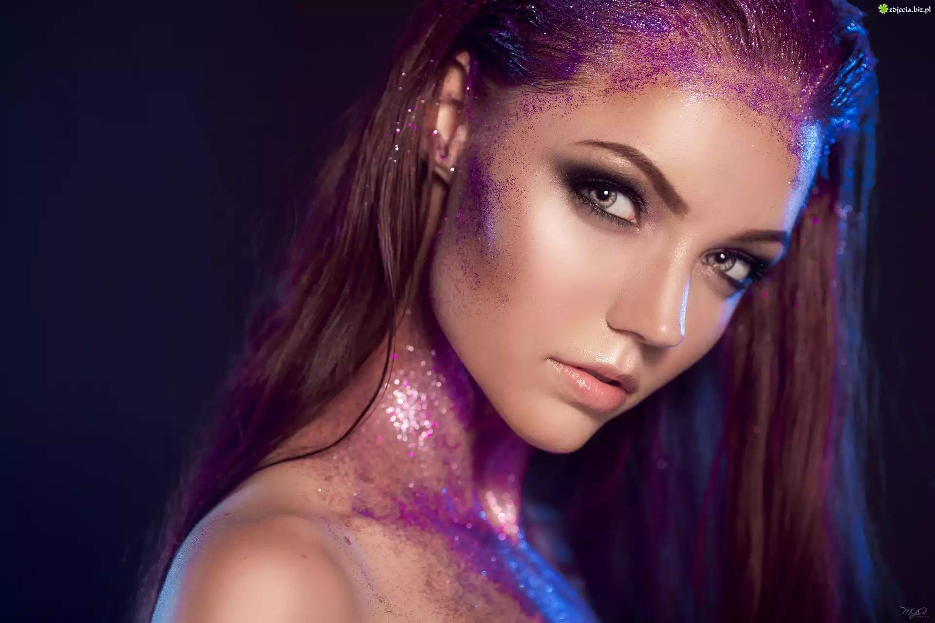 Zdjęcie, Alina Bagrets, Makijaż, Brokat, Twarz