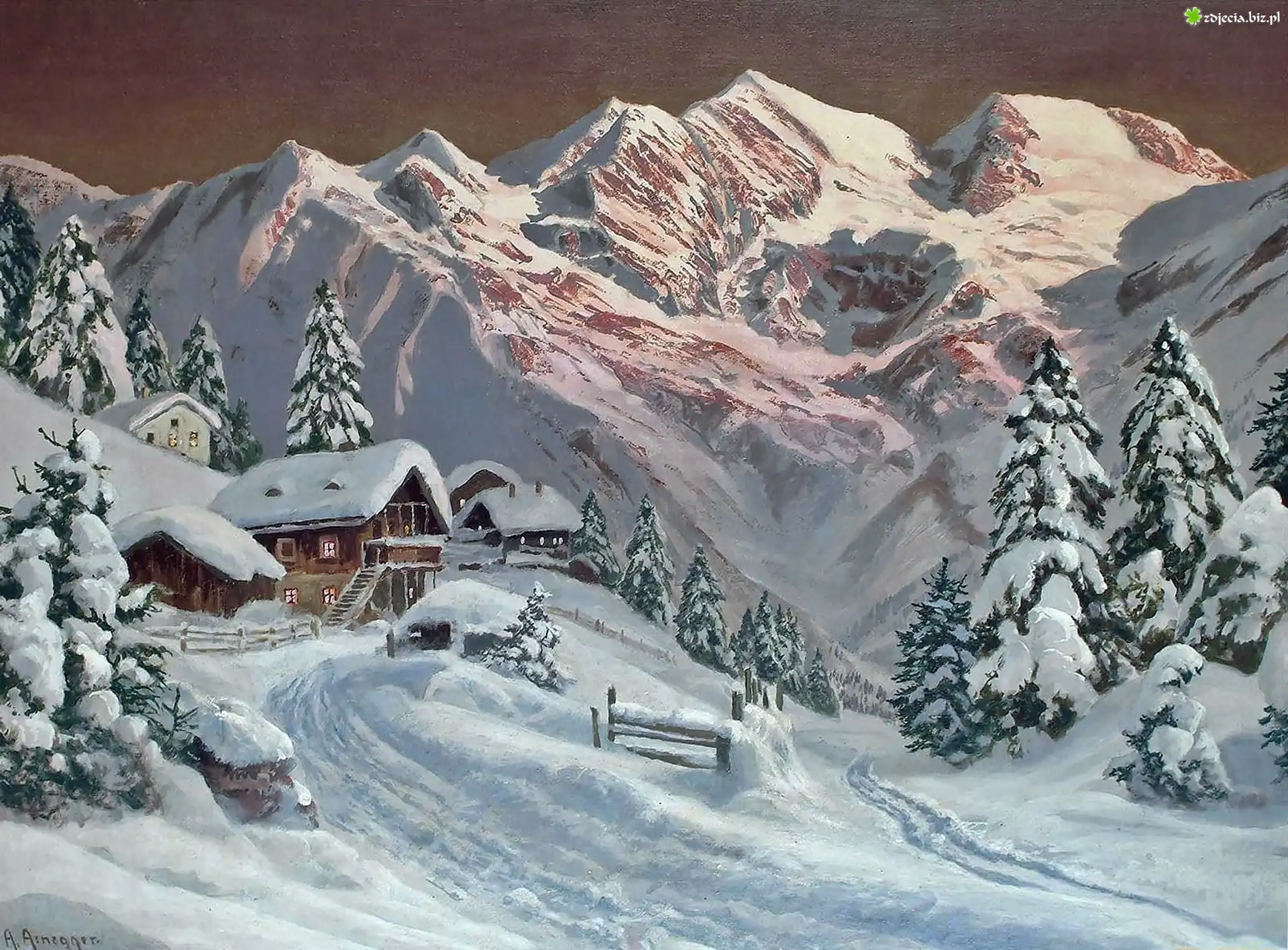 Zdjęcie Alois, Arnegger, Zima, Góry, Domy, Świerki