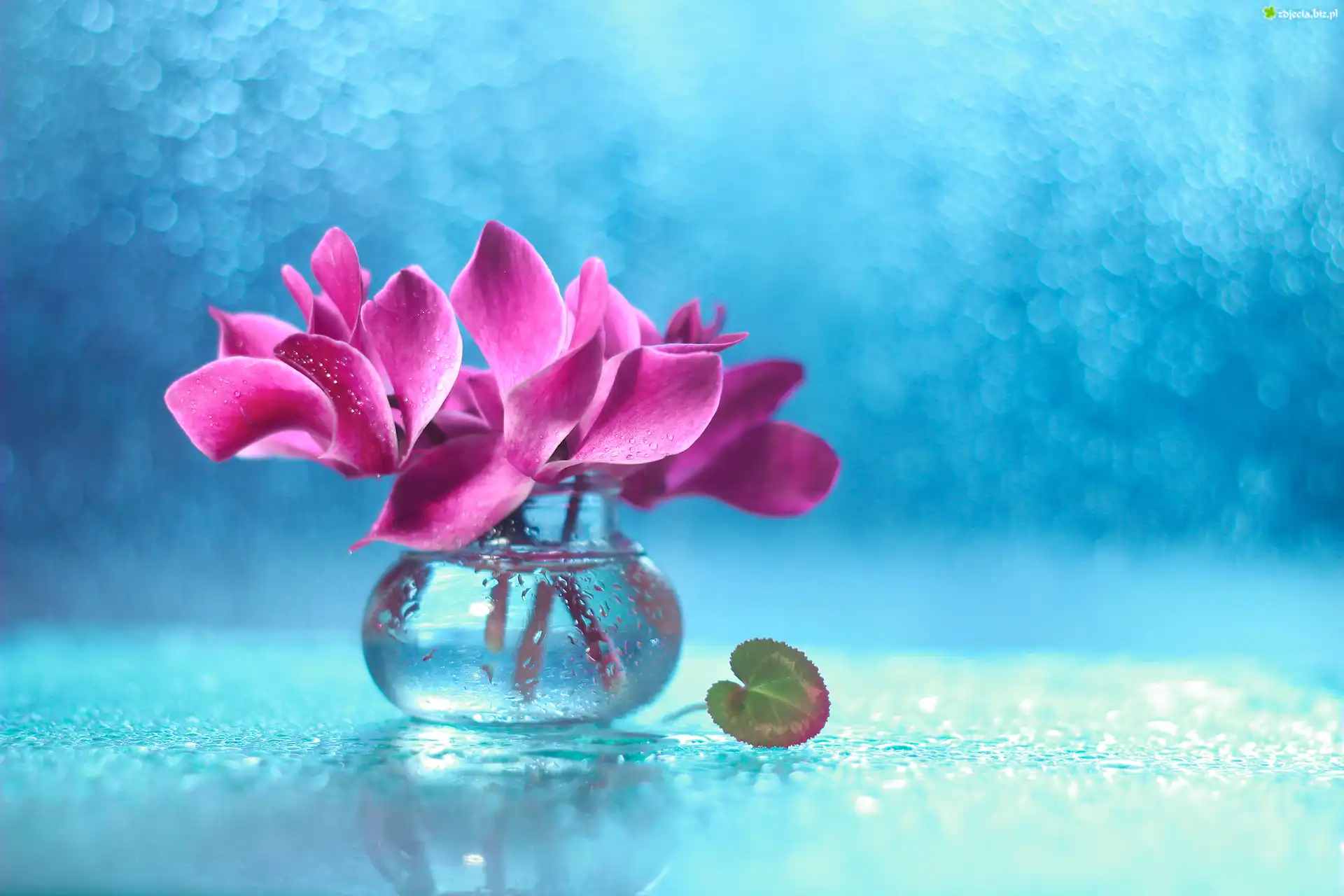 Zdjęcie, Dekoracja, Fiołki Alpejskie, Różowe, Kwiaty, Cyklameny, Wazonik, Bokeh