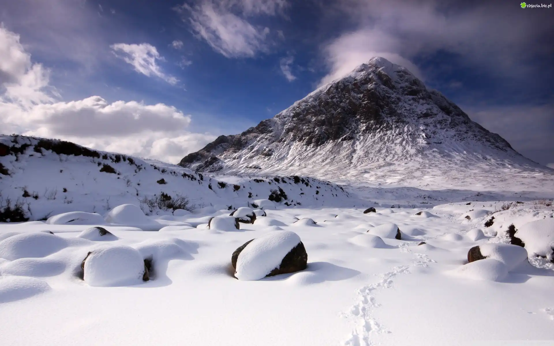 Zdjęcie Alpy, Góry, Zima, Śnieg, Ślady