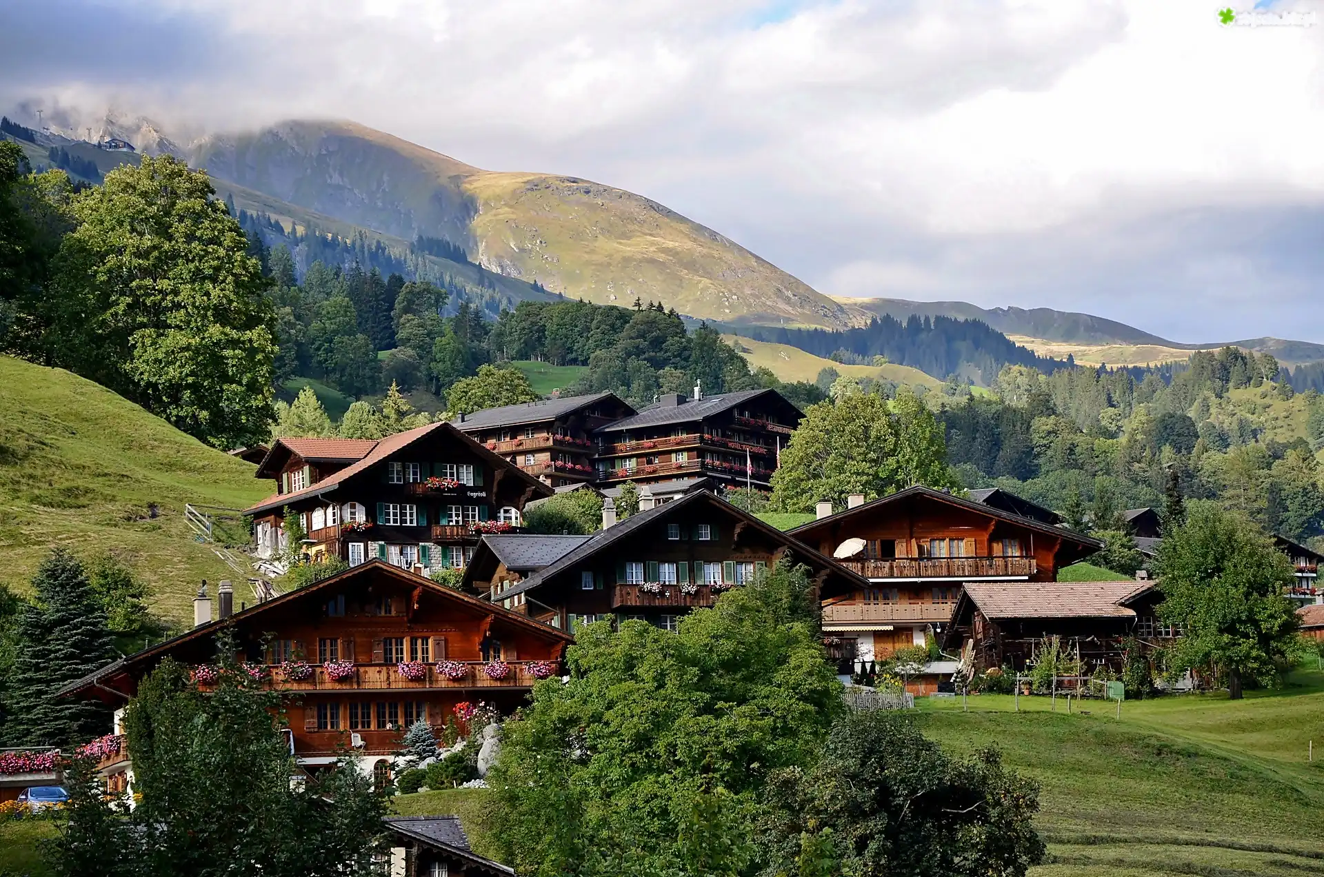 Zdjęcie Alpy, Lasy, Łąki, Wioska, Grindelwald