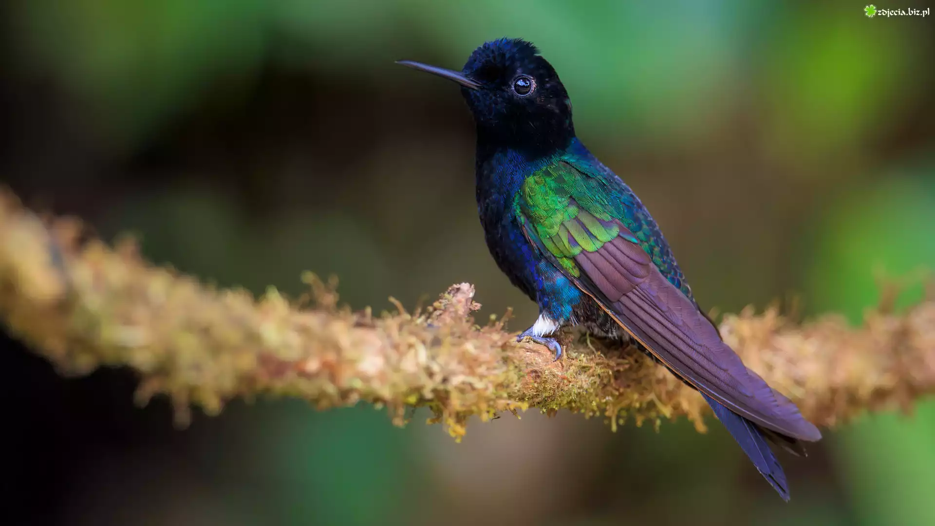 Zdjęcie Kolorowy, Ptak, Koliber, Amorek szafirowy, Gałązka