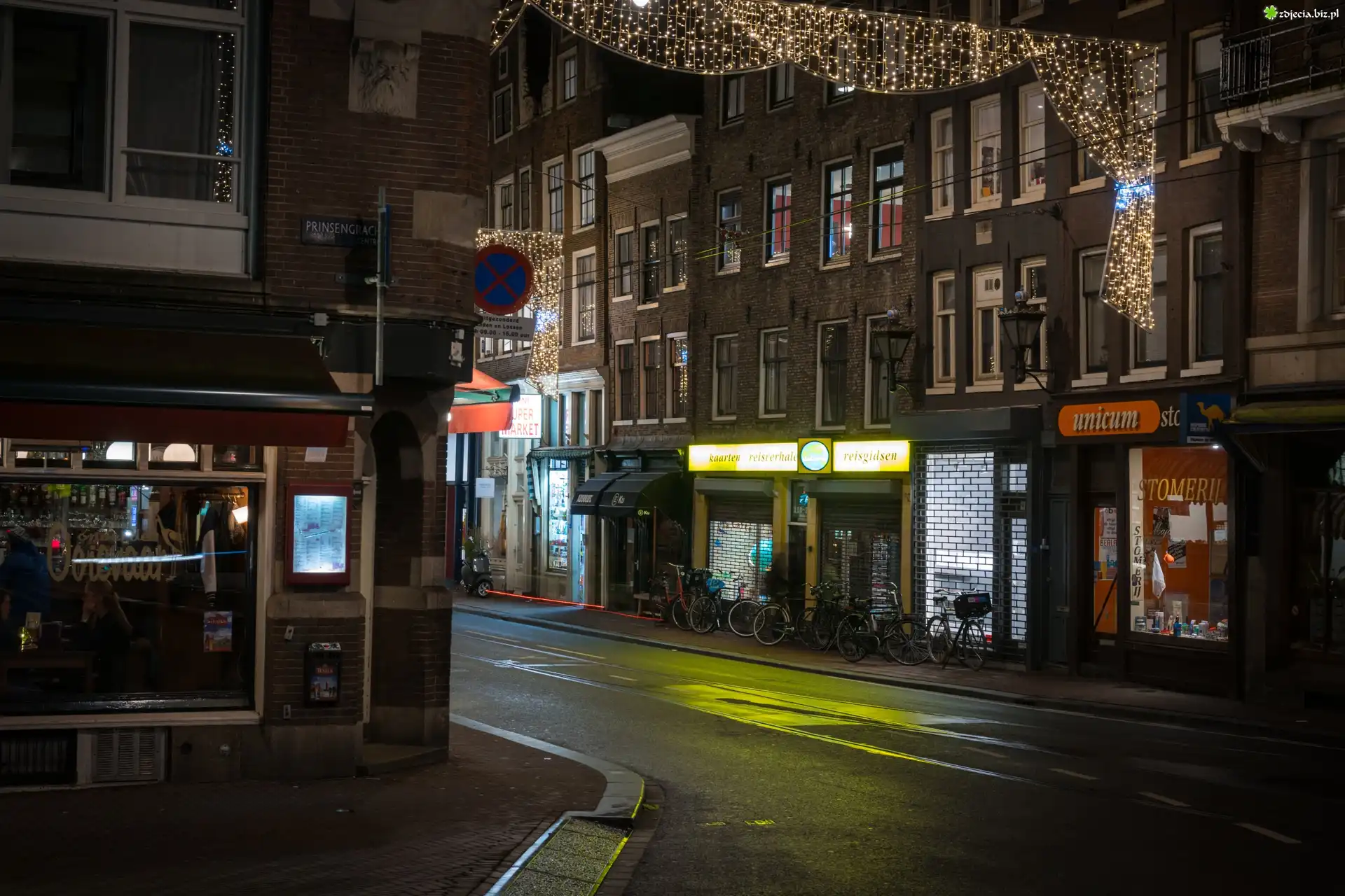 Zdjęcie Amsterdam, Holandia, Uliczka, Noc, Domy