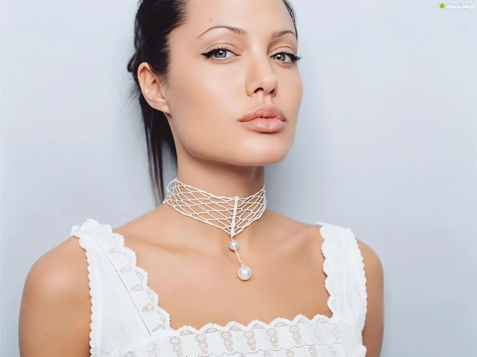 Zdjęcie, Angelina Jolie, biały top, naszyjnik