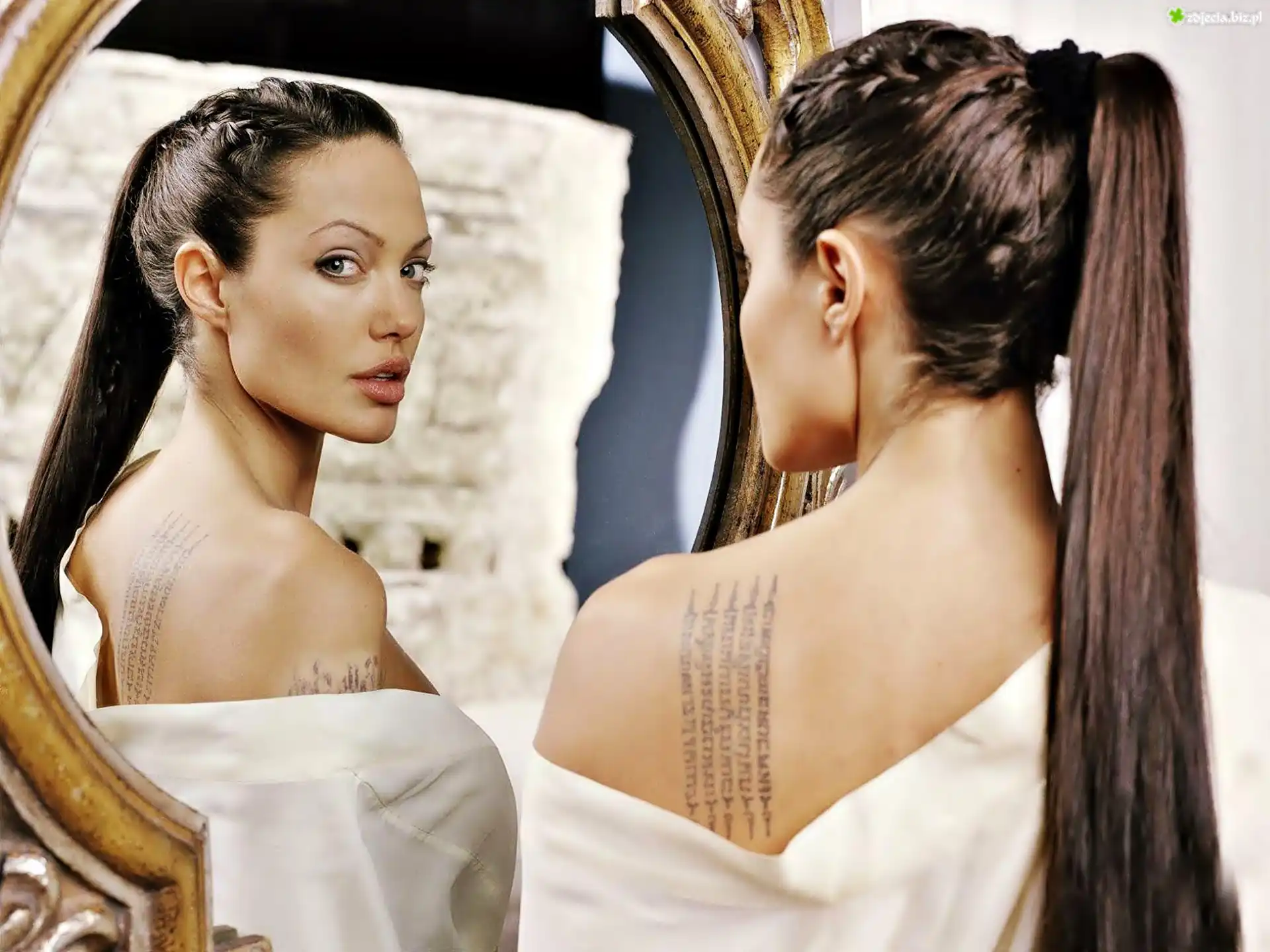 Zdjęcie Angelina Jolie, długie włosy, tatuaż