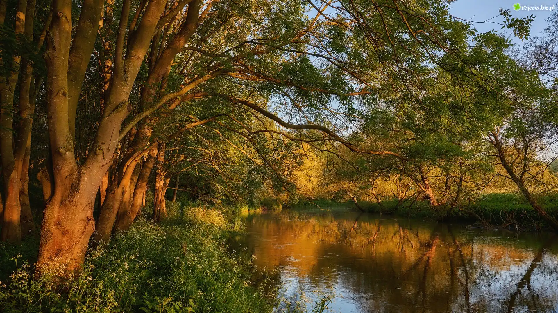 Zdjęcie, Rzeka, River Great Ouse, Drzewa, Hrabstwo Bedfordshire, Anglia