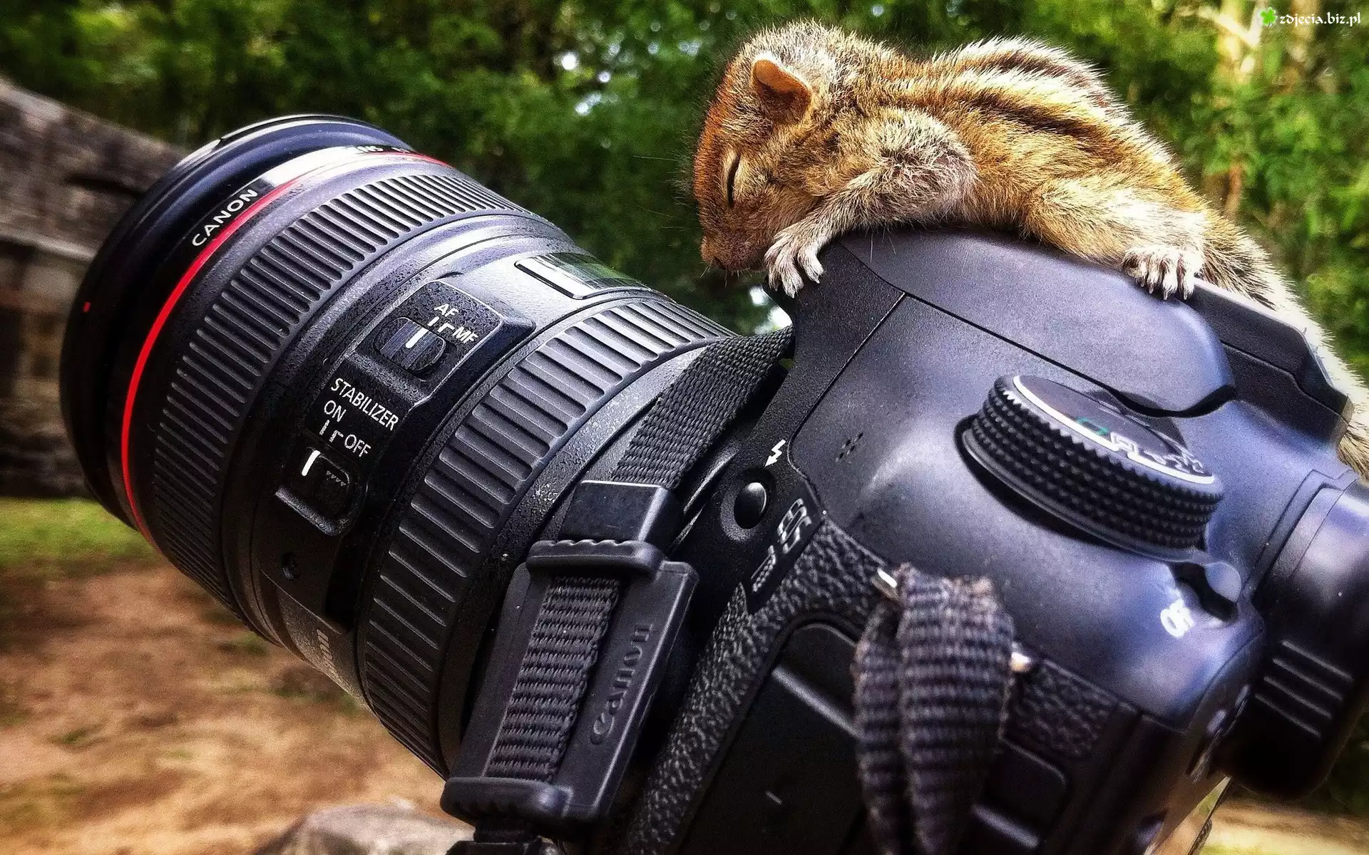 Zdjęcie Śpiąca, Wiewiórka, Aparat, Las