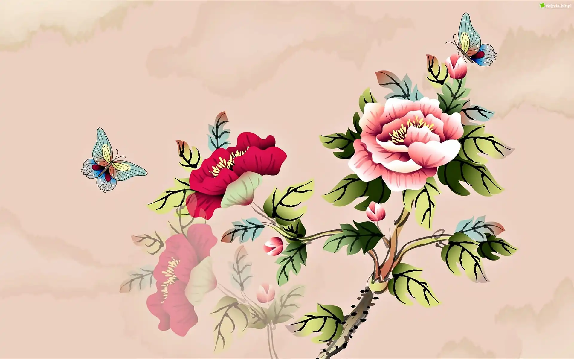 Zdjęcie Artystyczna, Grafika, Róże, Motyle, 2D