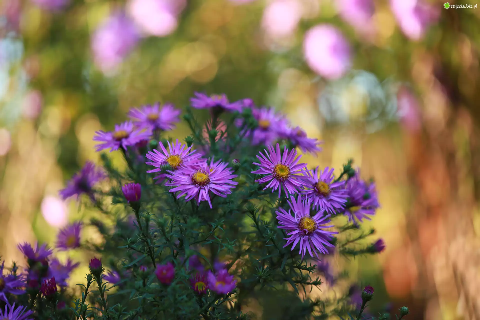 Zdjęcie Fioletowe, Astry, Kwiaty, Rozmyte tło