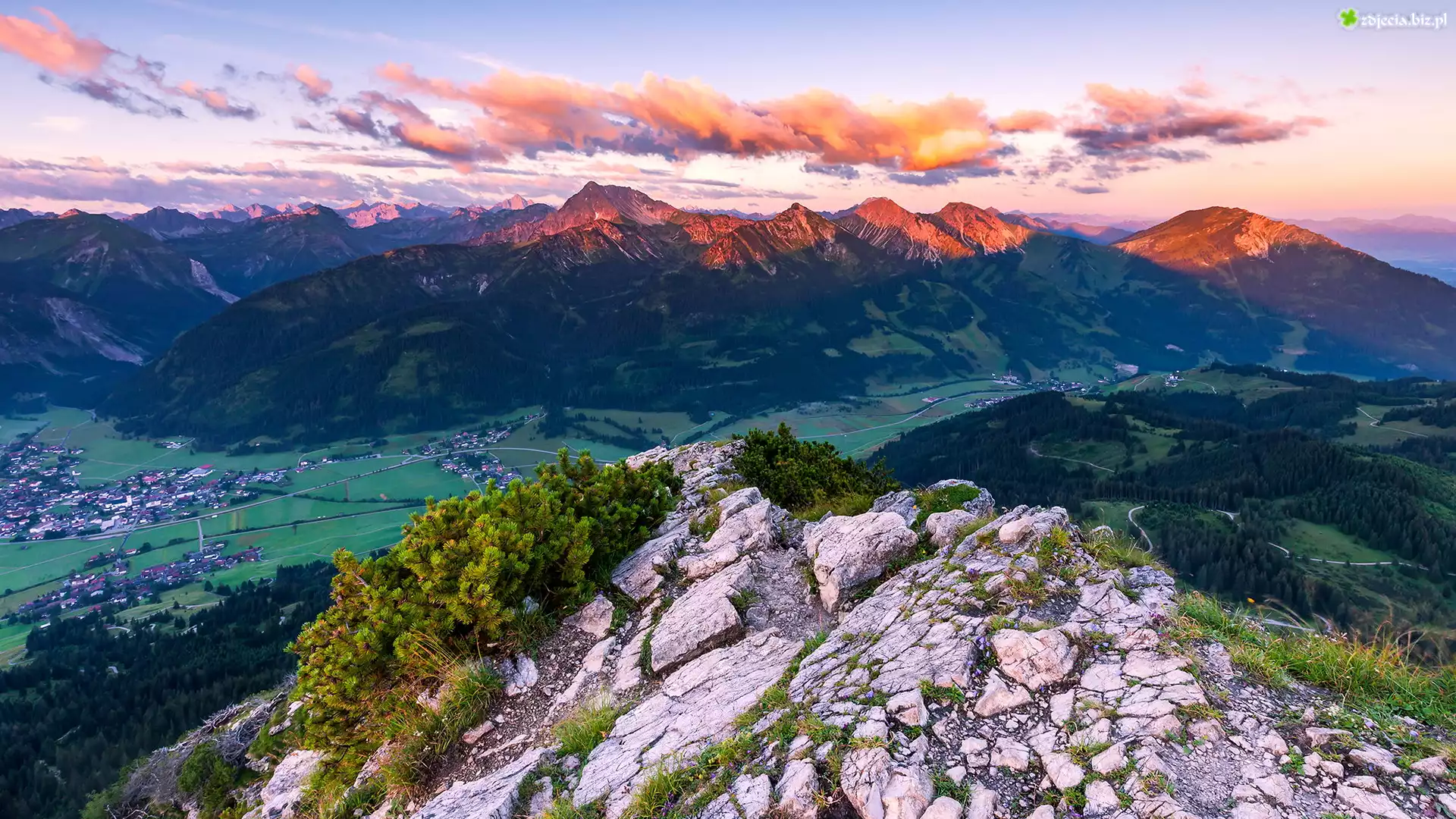 Zdjęcie Góry, Alpy Algawskie, Dolina, Tannheimer Valley, Skała, Rośliny, Tannheim, Austria