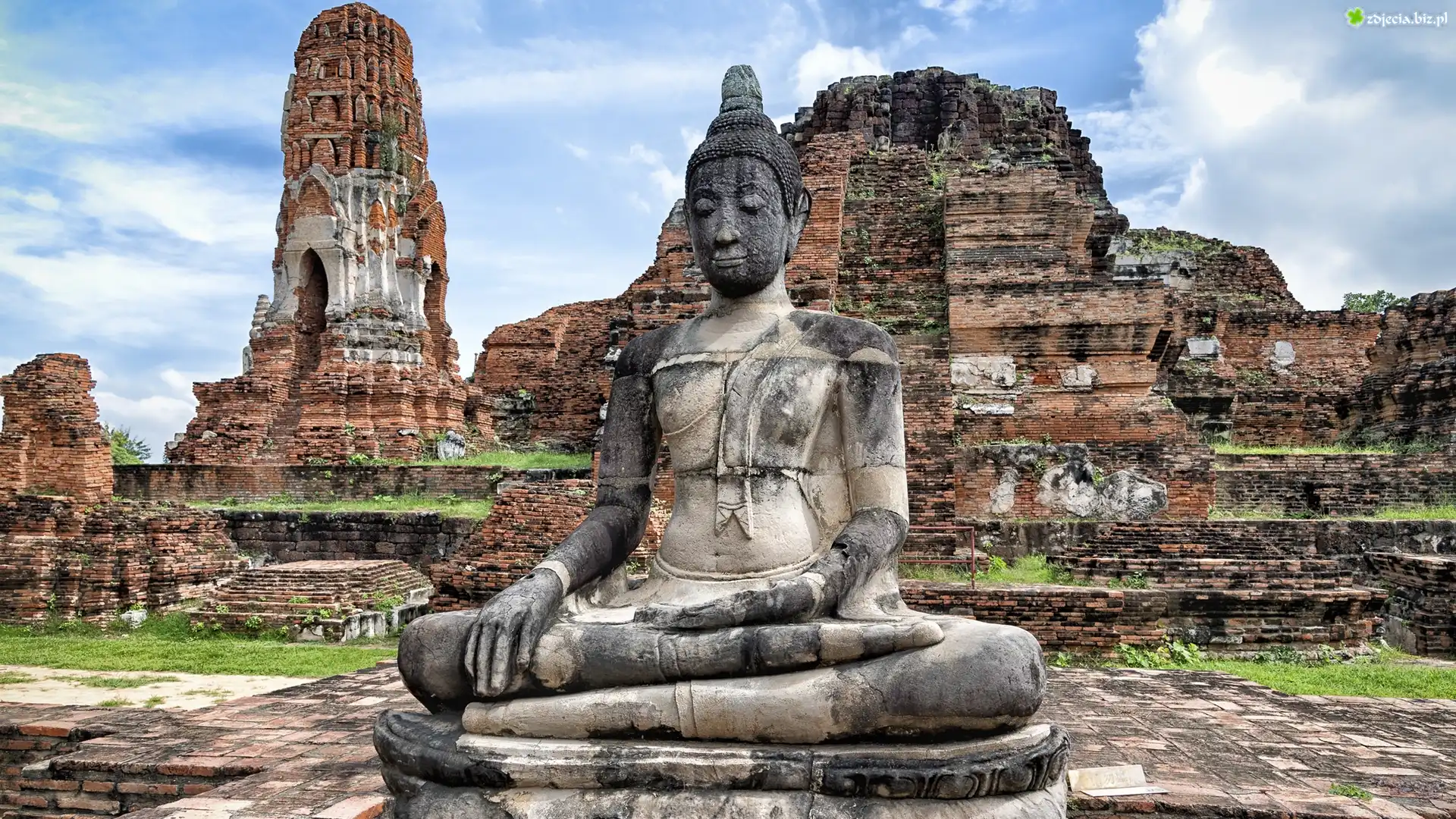 Zdjęcie Posąg Buddy, Świątynia Wat Mahathat, Ruiny, Tajlandia, Miasto Ayutthaya