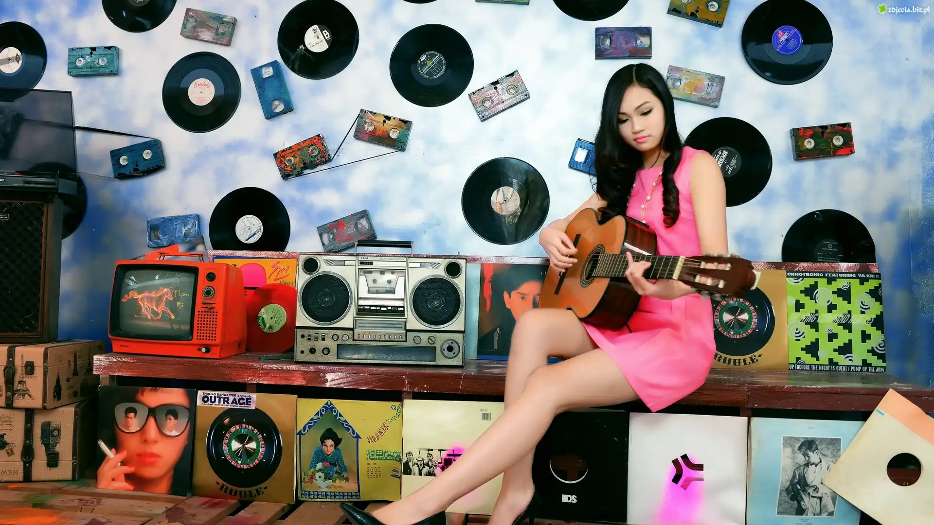 Zdjęcie Azjatka, Gitara, Pokój, Muzyczny