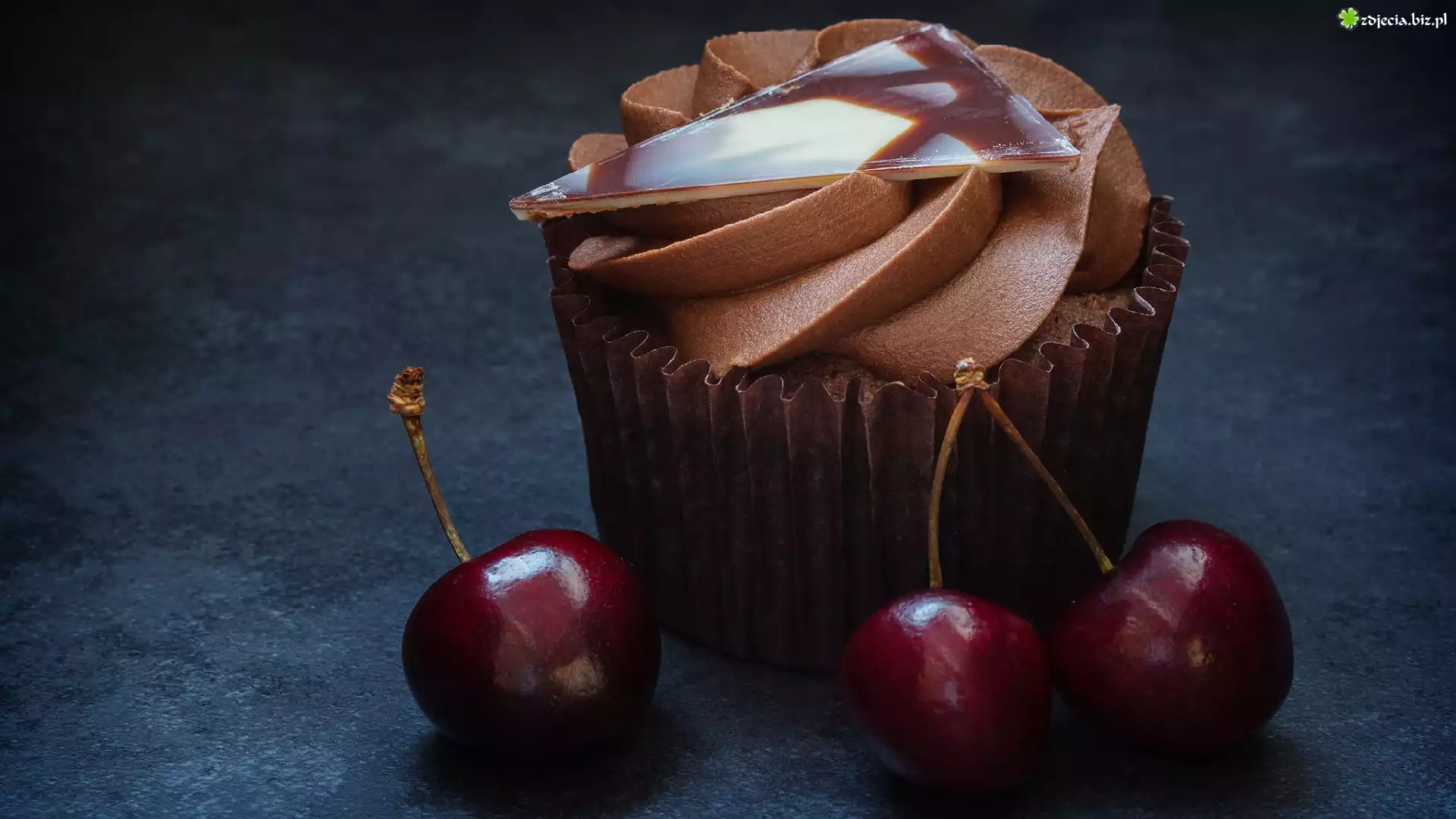 Zdjęcie Babeczka, Czekoladowy, Krem, Czereśnie