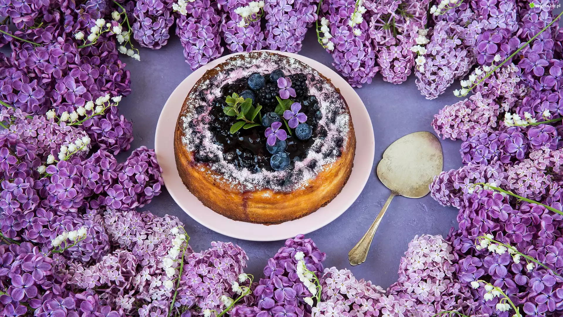 Zdjęcie, Ciasto, Babka, Łopatka do ciasta, Konwalie, Bez, Gałązki